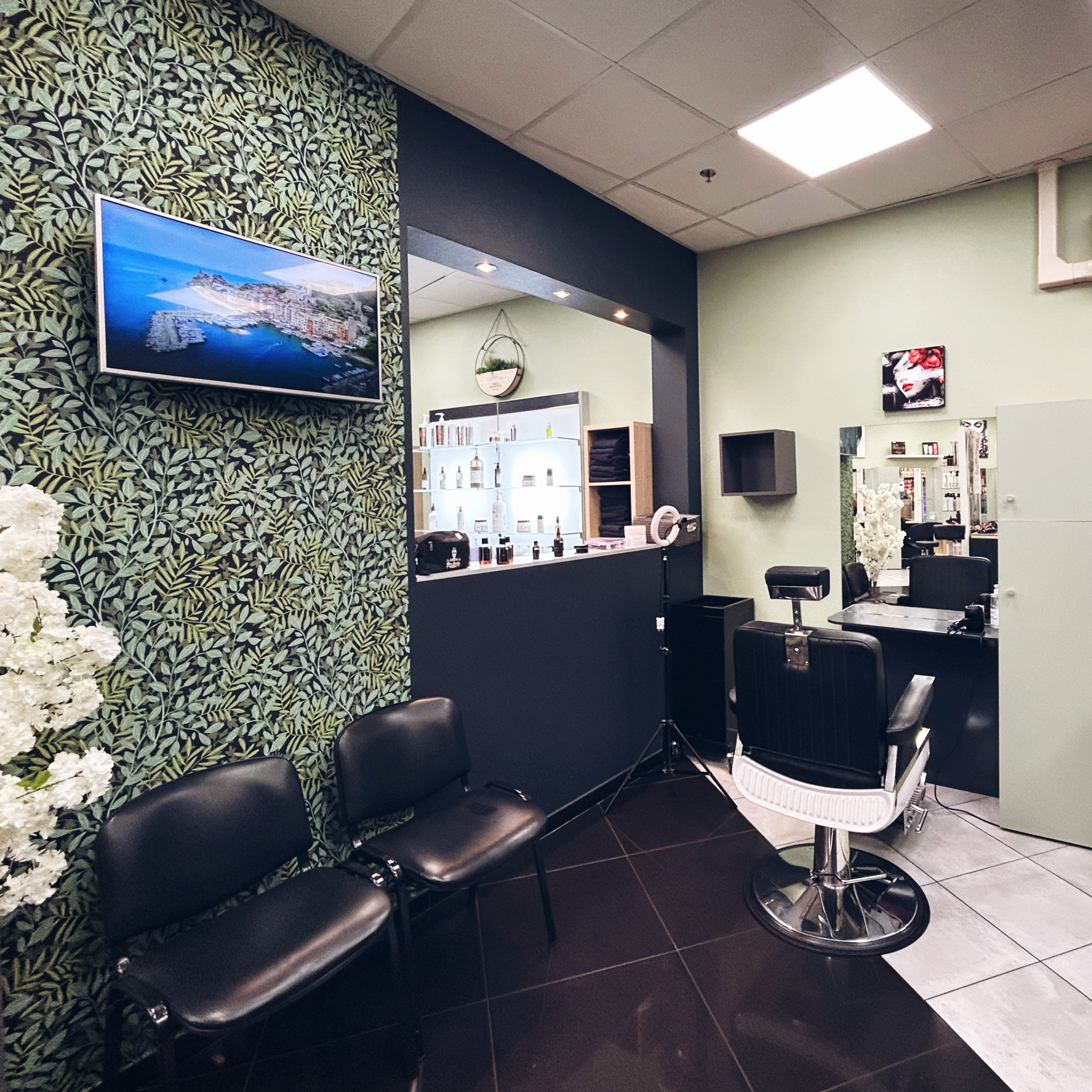 Salon de coiffure mixte. Ouvert entre 12h et 14h du mardi au samedi