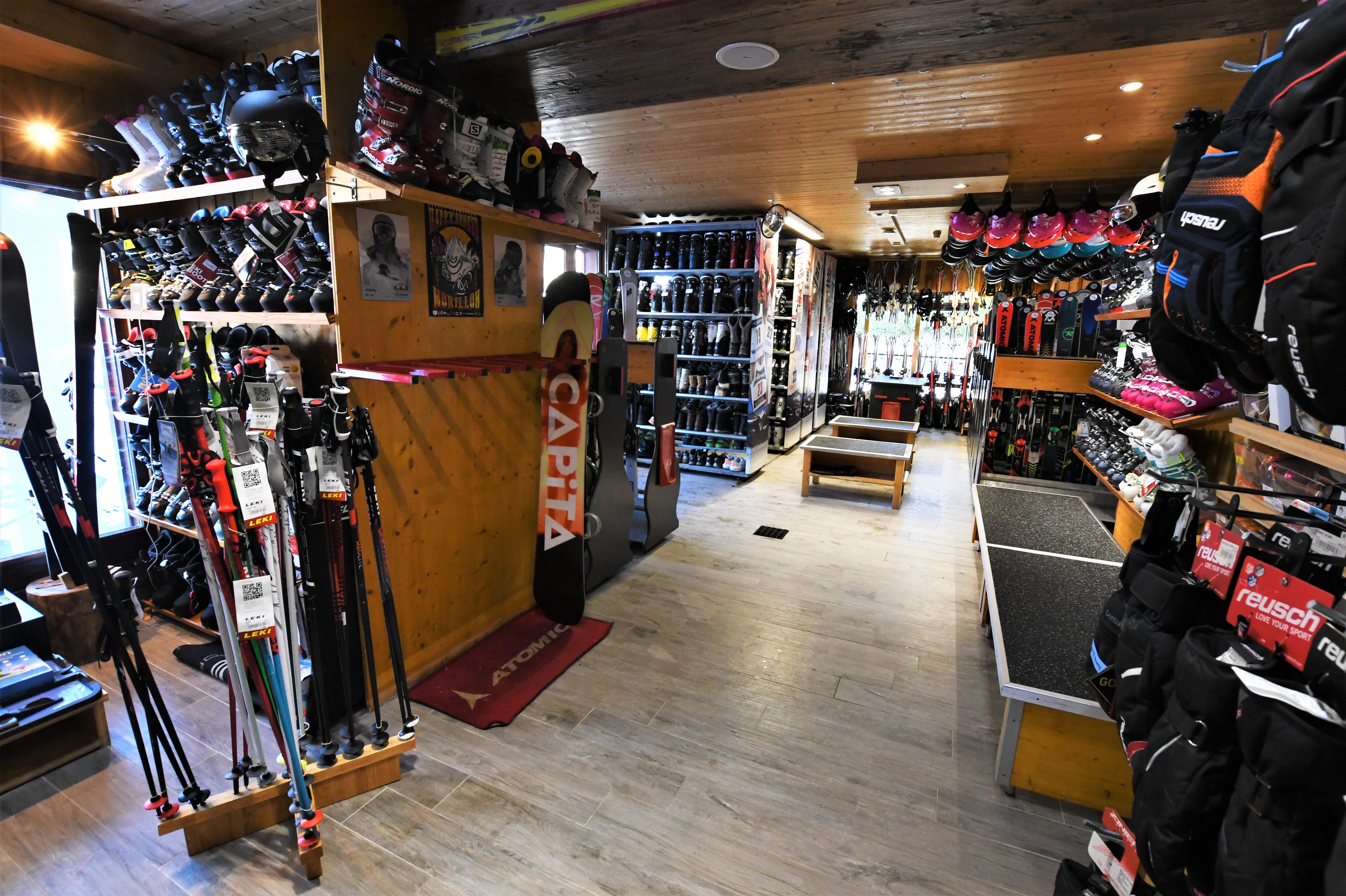 Vente d'accessoires, réparation et location de ski. Consigne gratuite pour les skis et chaussures loués. Situé à l'arrivée de la télécabine venant de Morillon village.