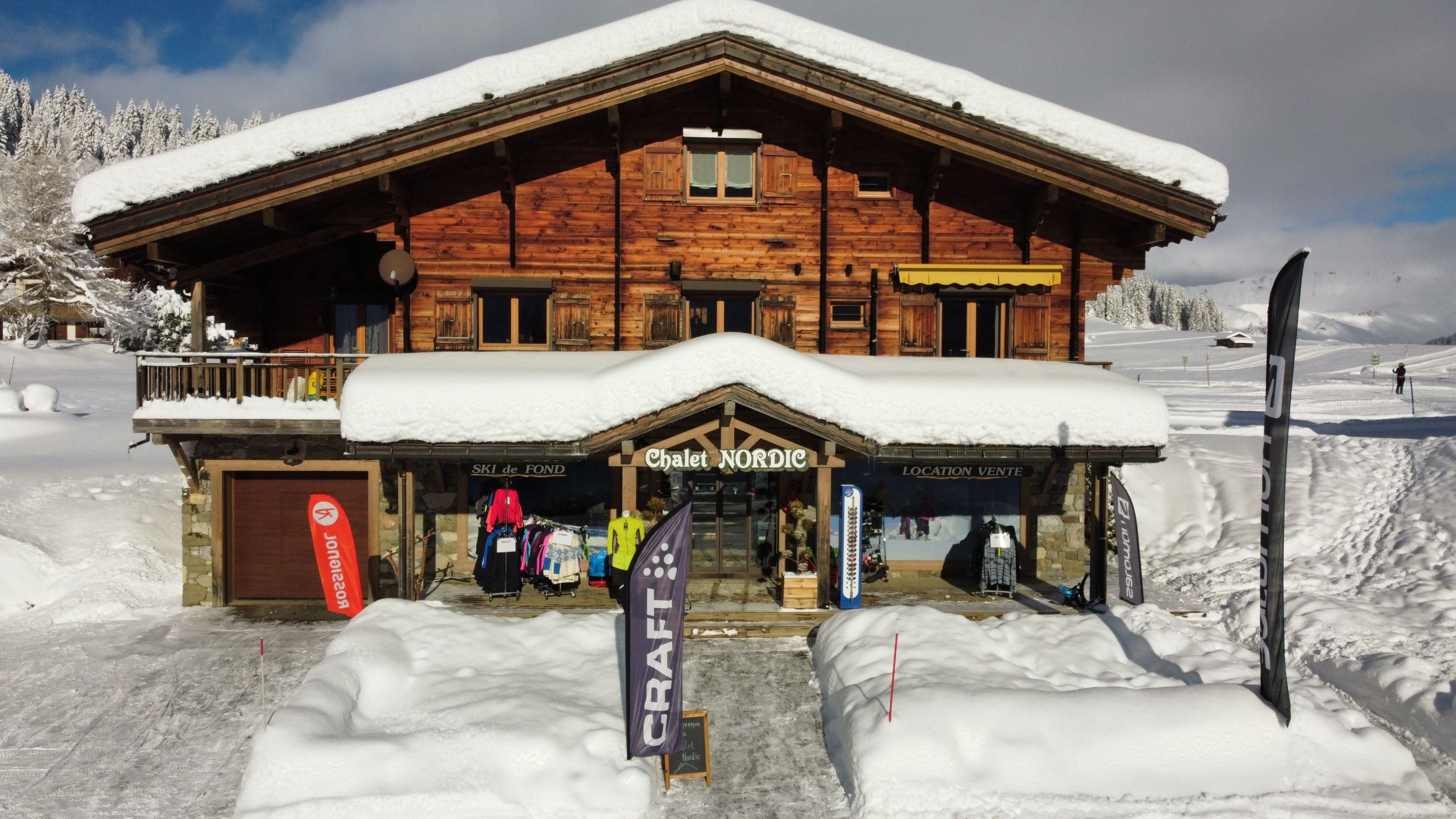 Magasin de location de skis, multimarque, situé sur l'artère principale de La Clusaz, à proximité des commerces et des remontées mécaniques du Bossonnet.