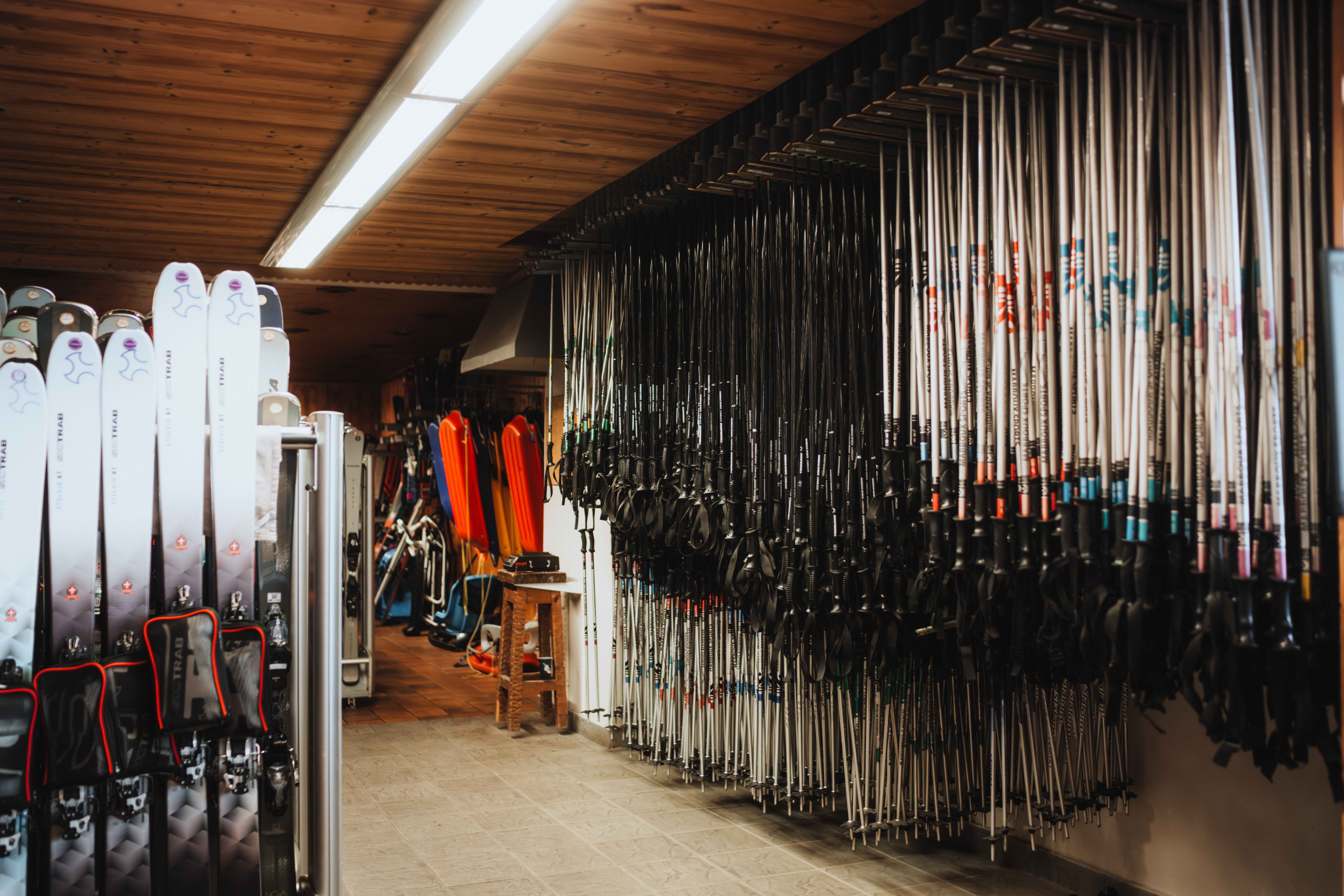 Une partie location : Skis alpins, snowboards, ski de randonnée, splitboards, raquettes, luges, ski de fond.