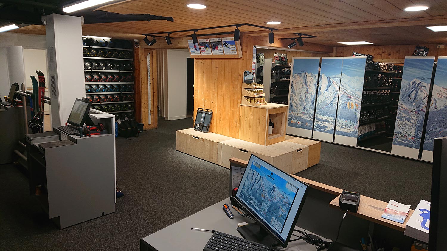 Boutique SUN VALLEY et magasin de vente et location de matériel de ski.