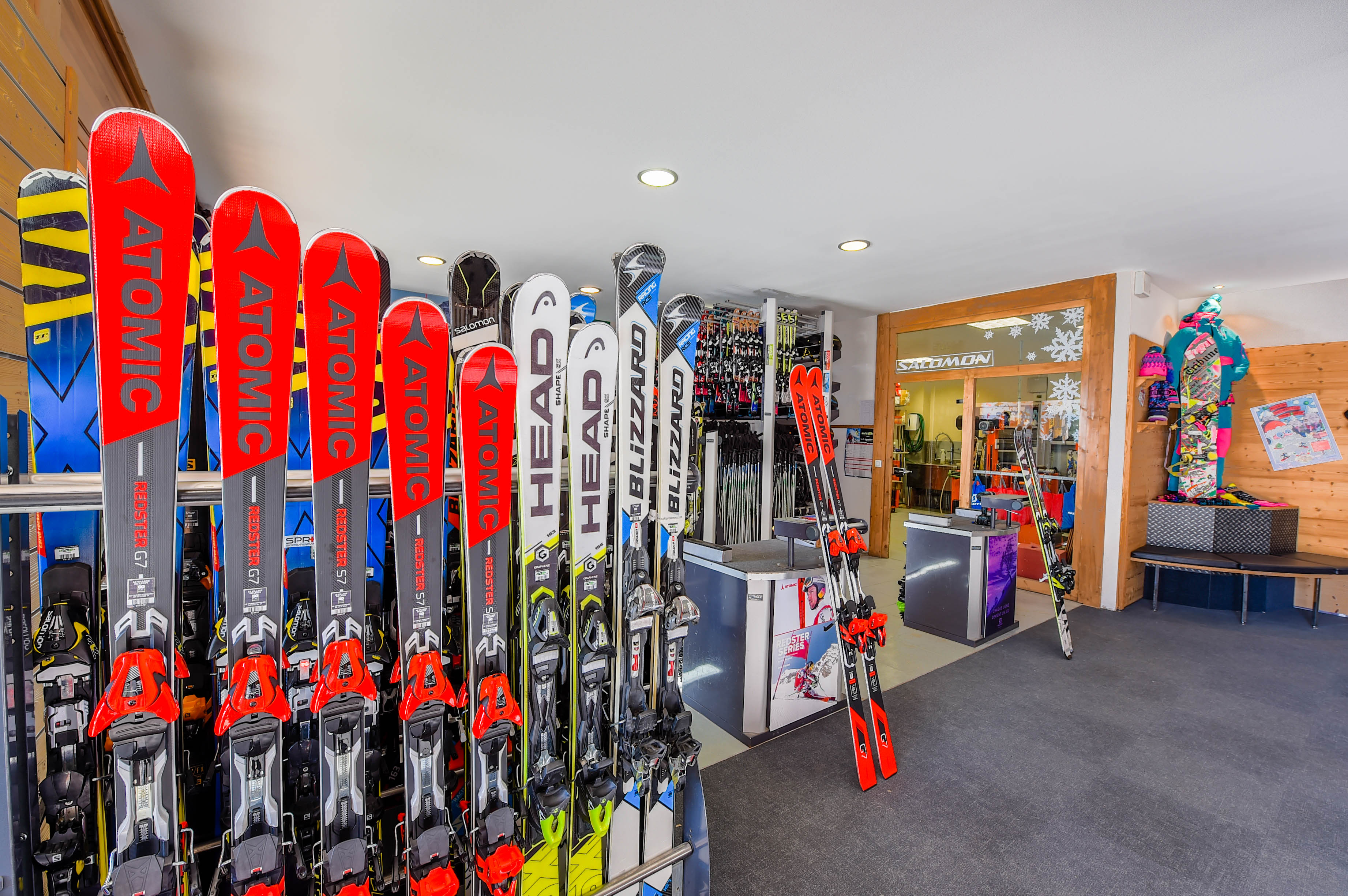 Magasin de location de skis situé au départ des télécabines. Consigne. Vente de forfaits de ski 4 heures, journée et 2 jours pour nos clients.