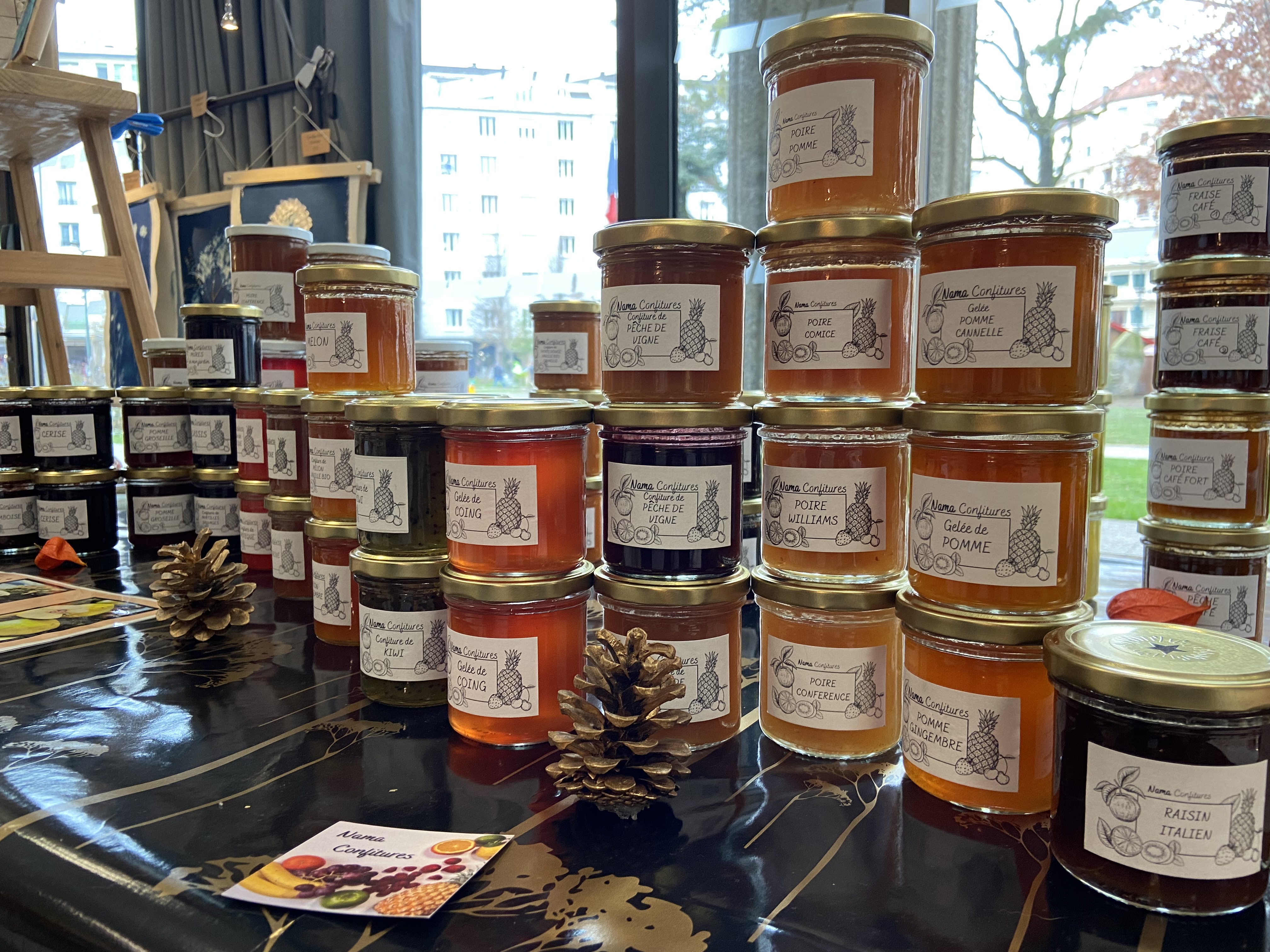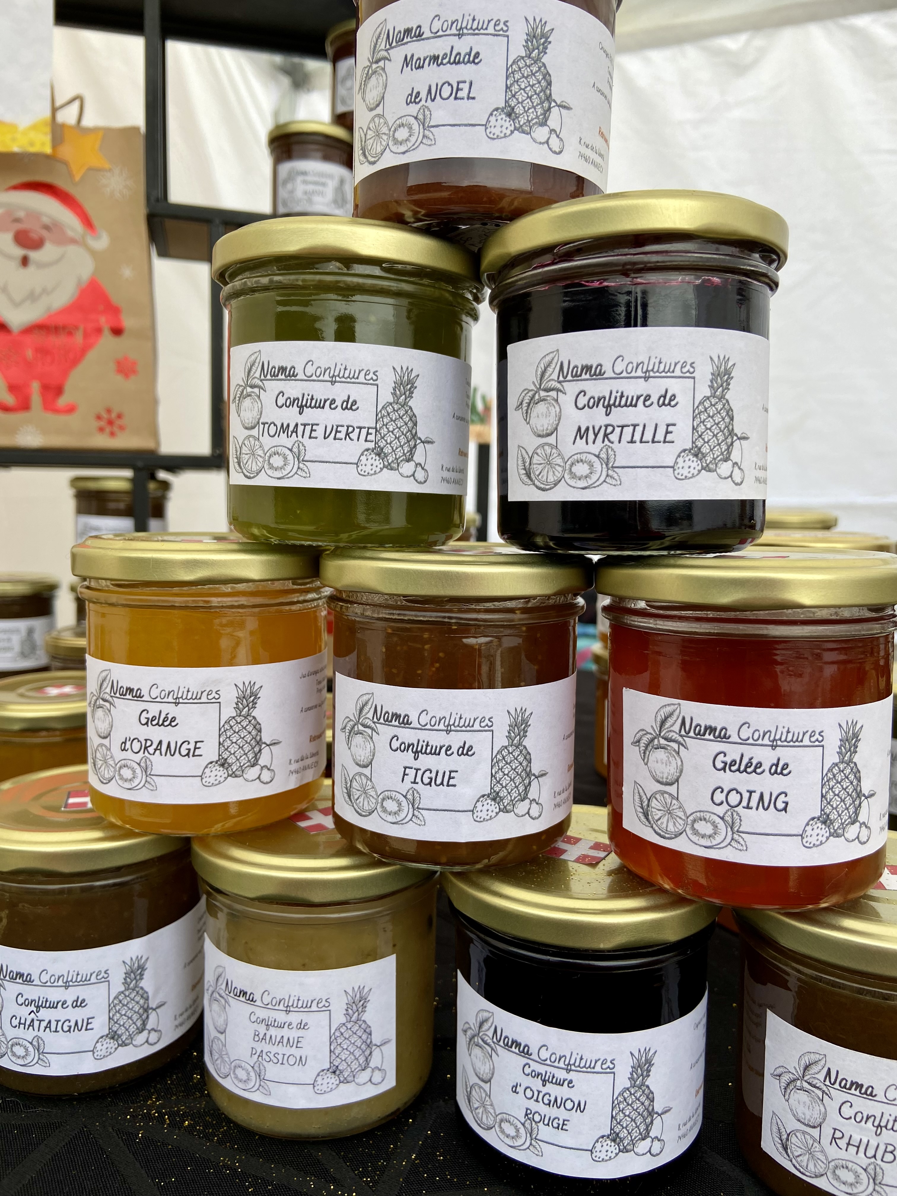 Confitures, gelées, marmelades et chutneys élaborés à partir de fruits de saison provenant du marché ou parfois de magasins spécialisés.
