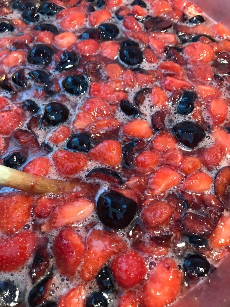 Fabrication artisanale de confitures à partir de fruits de saison avec cuisson au chaudron.