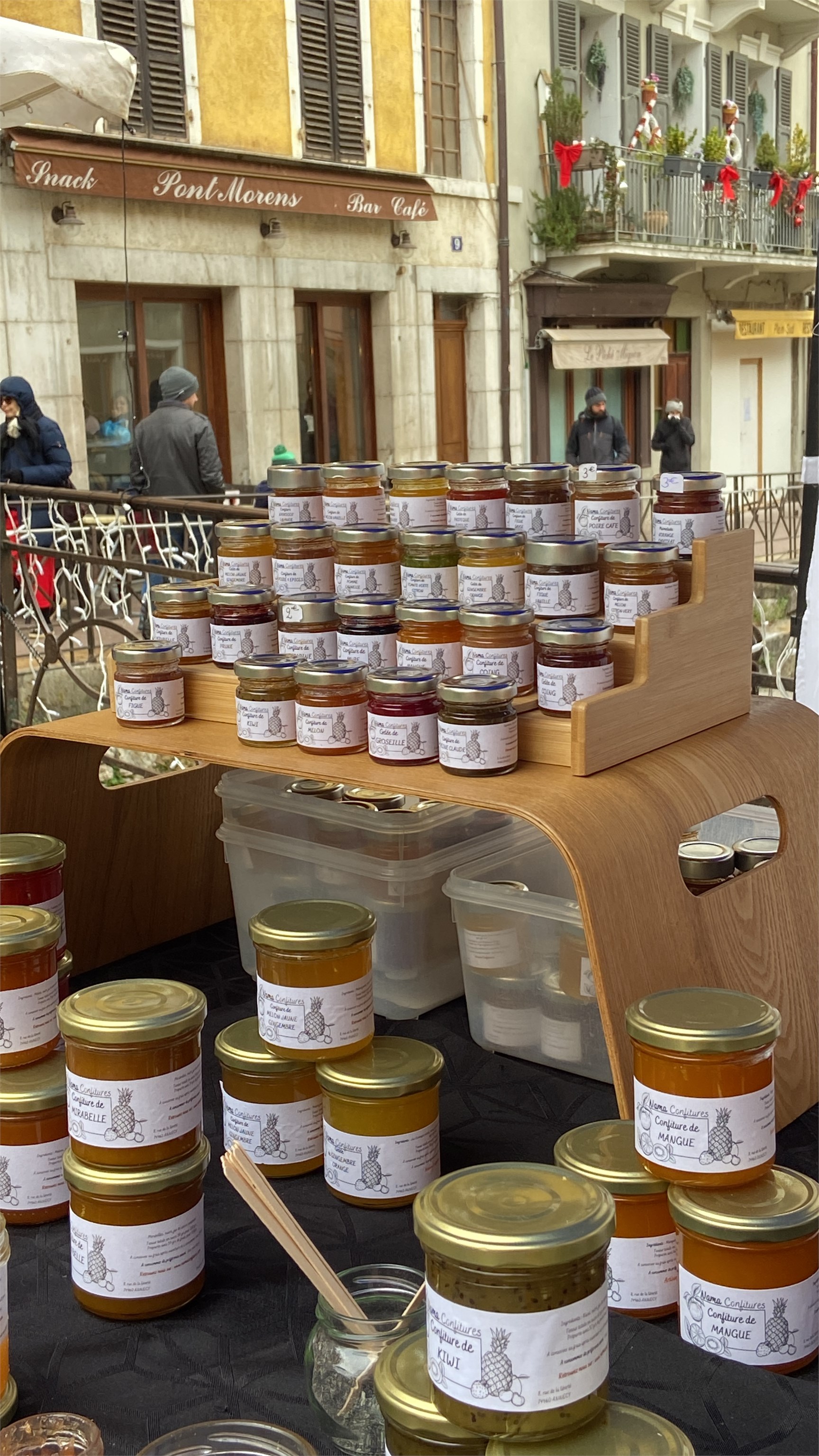 Dégustations et ventes vendredi (8h30-12h15 ) rue de la république et dimanche (8h30-13h ) au pont Morens dans le marché de la vieille ville d’Annecy