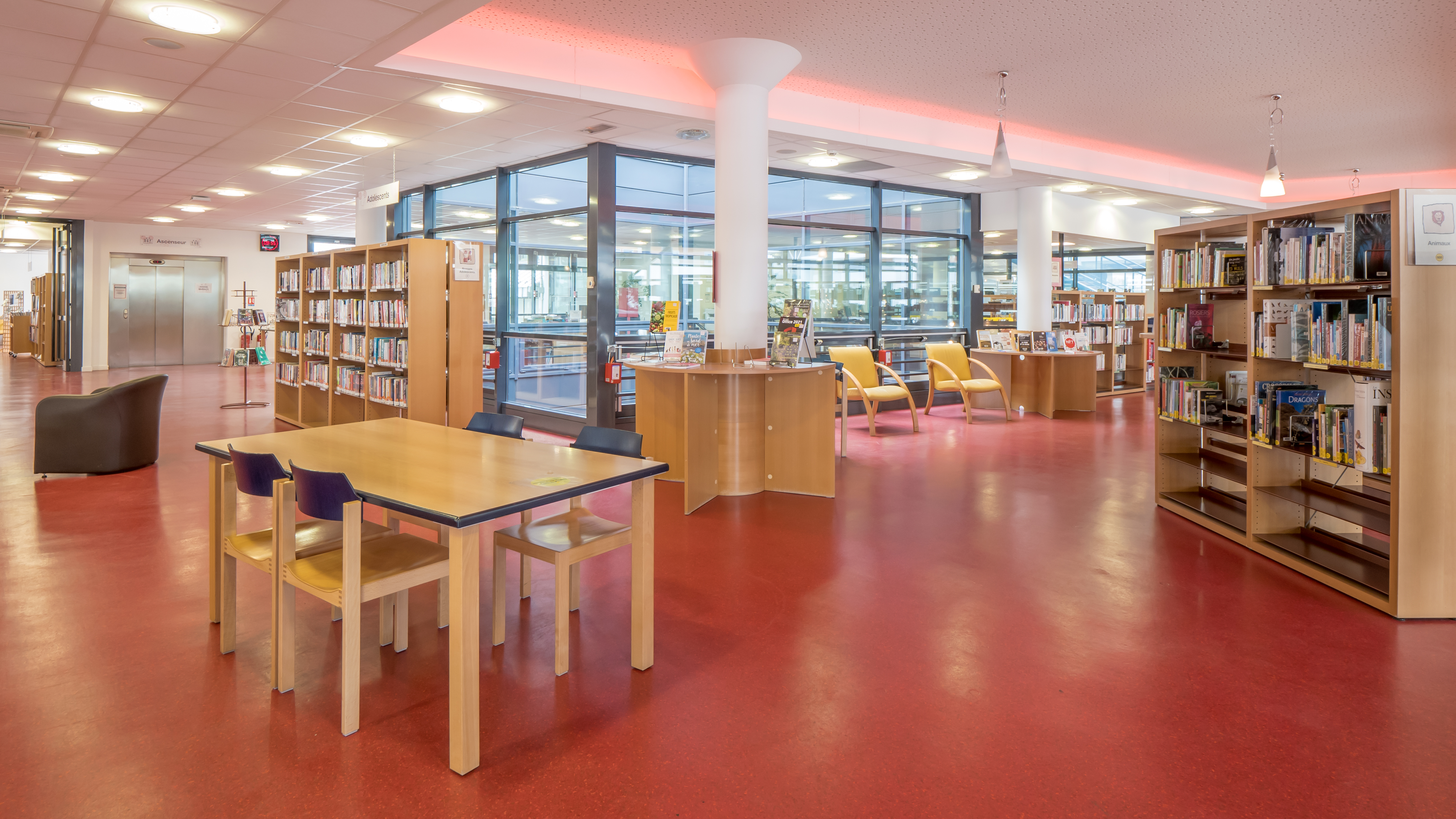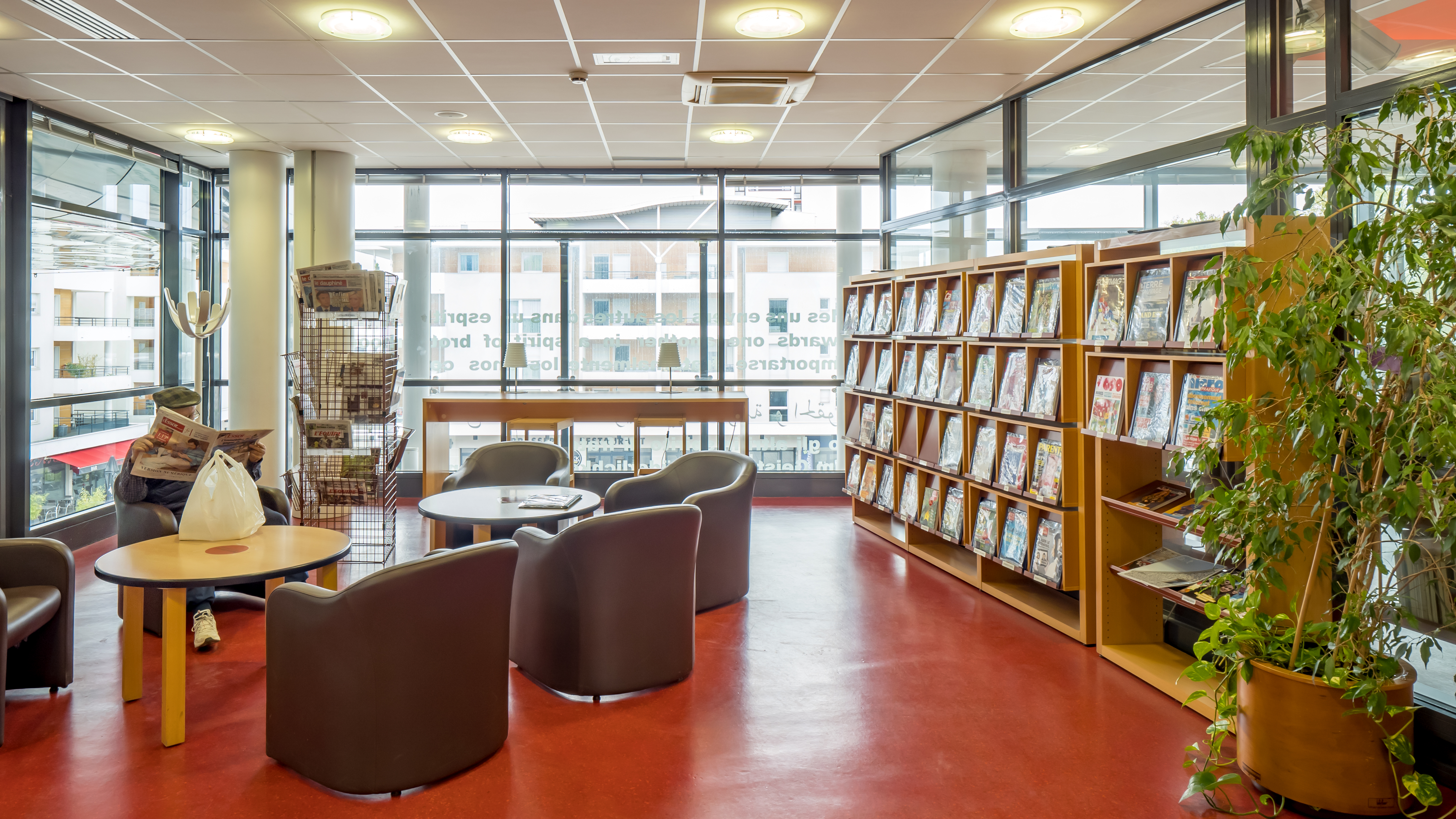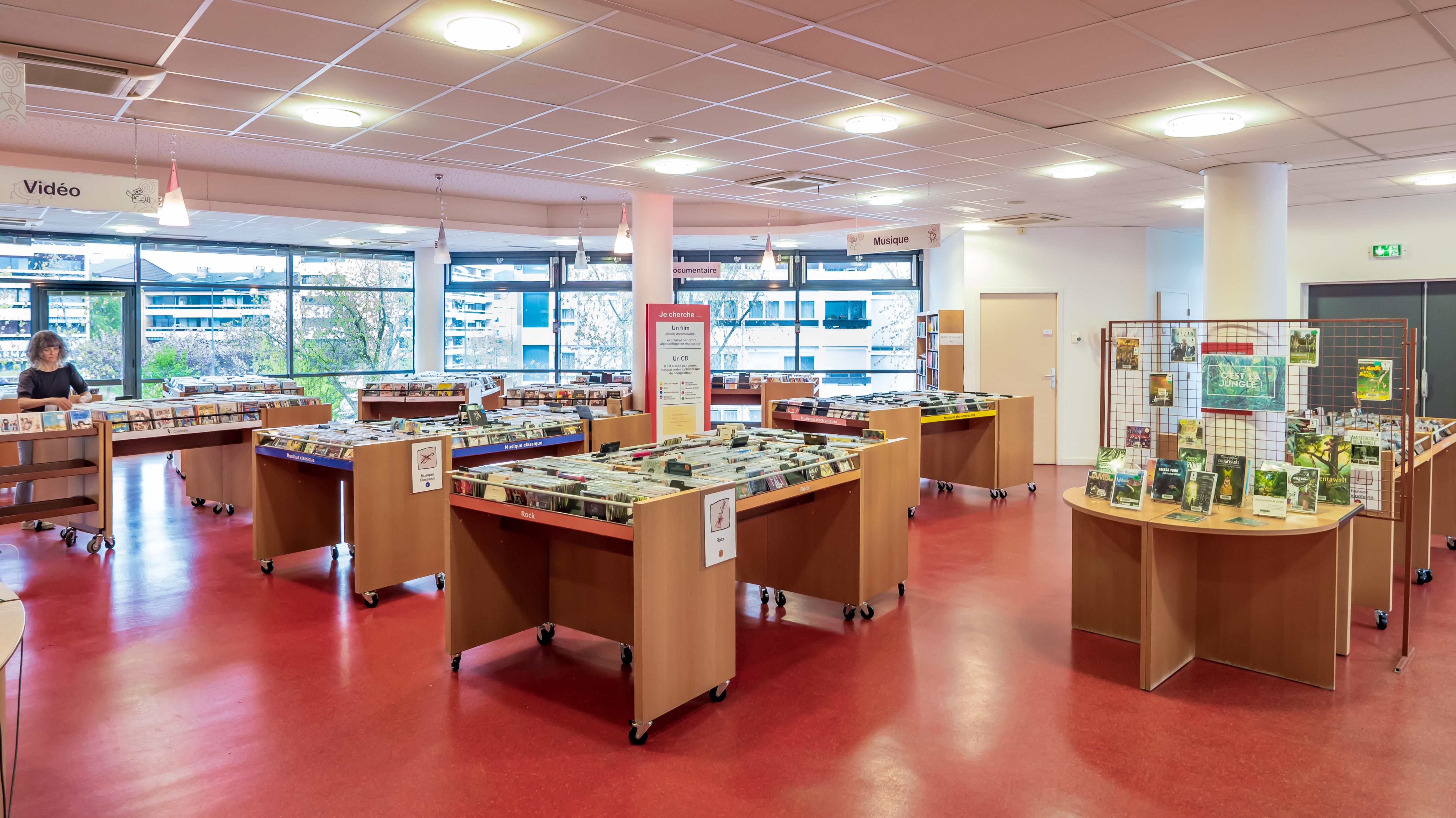 Aménagée sur deux étages, la médiathèque de Seynod propose une libre consultation de collections multimédias et de services variés. Elle comprend un point jeux de société ainsi que des espaces de travail, de médiation et de découverte pour tout âge.