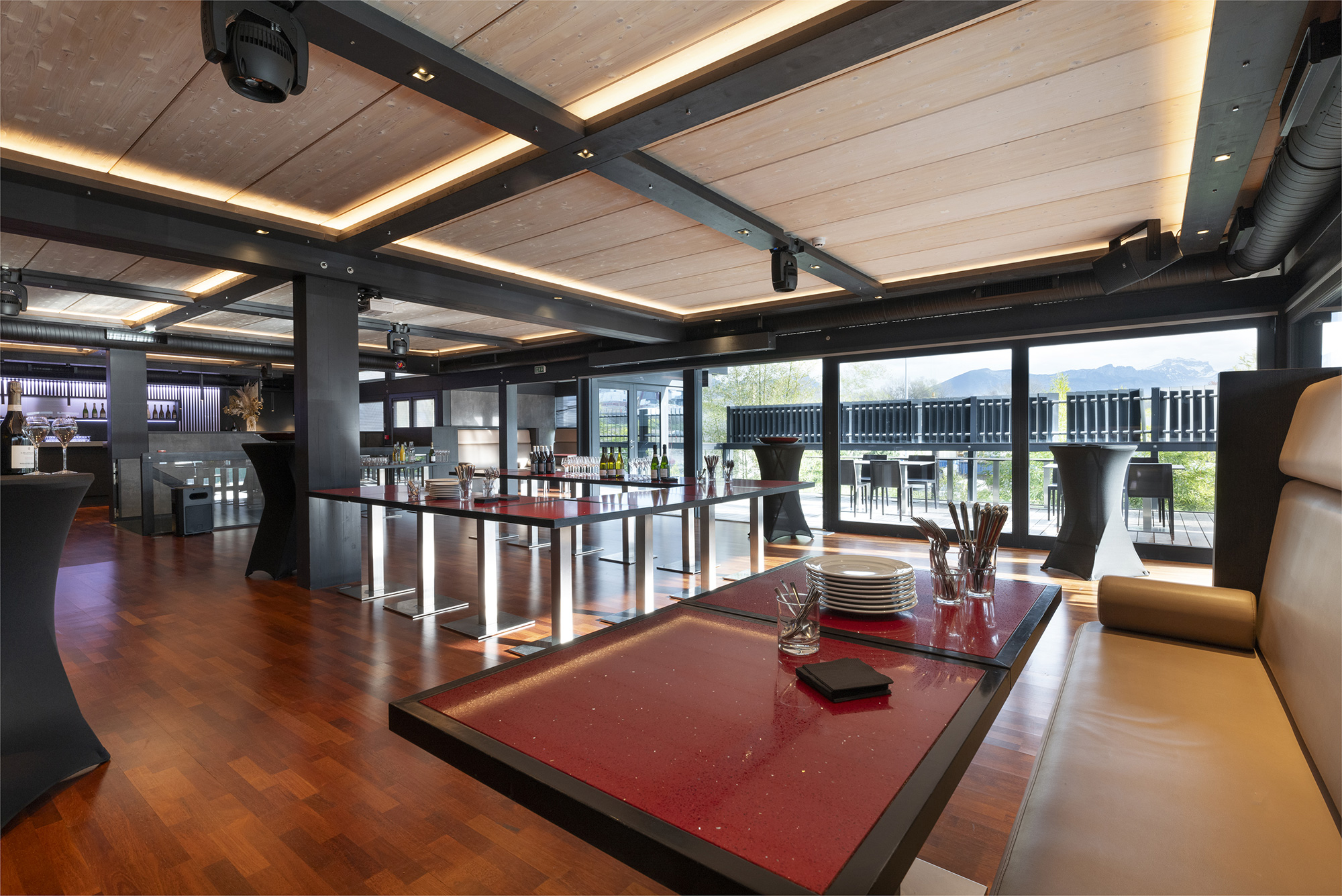 Dans la galerie, la brasserie Le Cinquante-Cinq, emblème de la qualité de vie, propose à tous sa cuisine fraîche et gourmande tous les midis du lundi au samedi. Ainsi est né un lieu polymorphe, unique et stimulant à Poisy près d’Annecy.