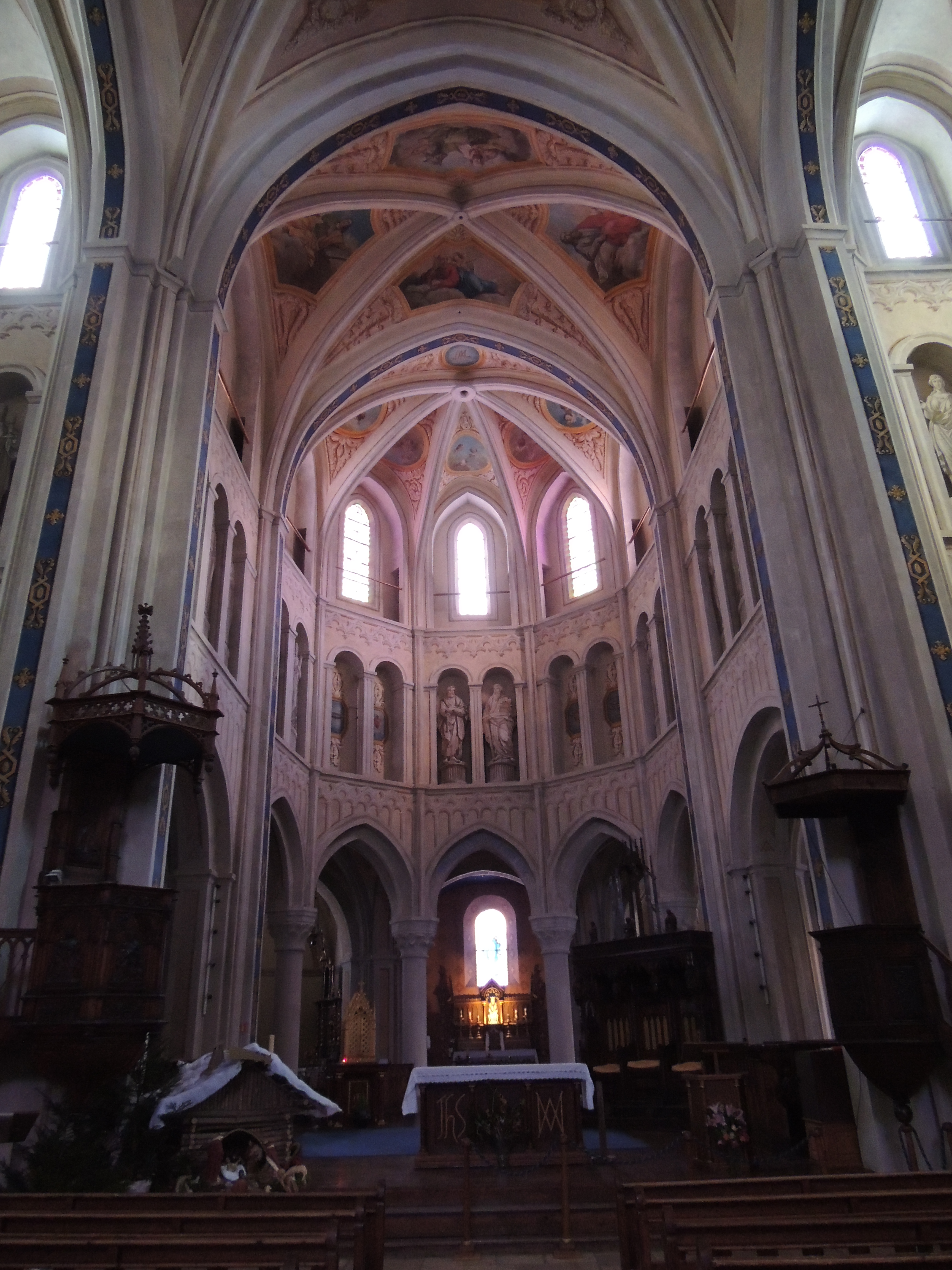 Autrefois partagée par les religieux et les paroissiens, elle est désormais entièrement paroissiale. Vous pourrez y admirer un somptueux mobilier liturgique de la fin du Moyen Âge, des tableaux et statues de l’époque moderne, ainsi que des décors de l’époque contemporaine dont les trompe-l’œil peints au XIXe siècle par l’artiste piémontais Casimir Vicario.