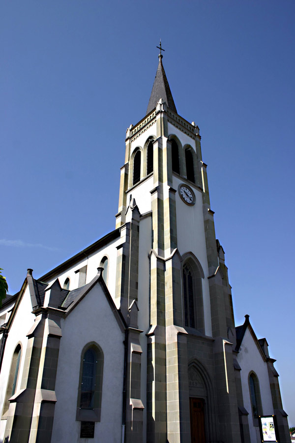 Sa forme actuelle de style néogothique est issue d’une initiative de 1862. Le bâtiment est alors accolé perpendiculairement à une forme plus ancienne qui sera détruite 10 ans plus tard. On dote ensuite l’église d’un orgue « Merklin » de taille modeste.