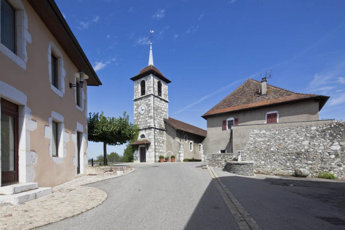 L’église actuelle date du 15e siècle et de son union à la collégiale Notre-Dame-de-Liesse d’Annecy. Précédée d’un clocher porche, elle est composée d’une simple nef. Dans la seconde moitié du 18e siècle, l’édifice est en mauvais état. Il est alors restauré par Charles Gallo, architecte ayant travaillé à l’ancienne église Saint-Martin de Vieugy et au palais épiscopal d’Annecy.
