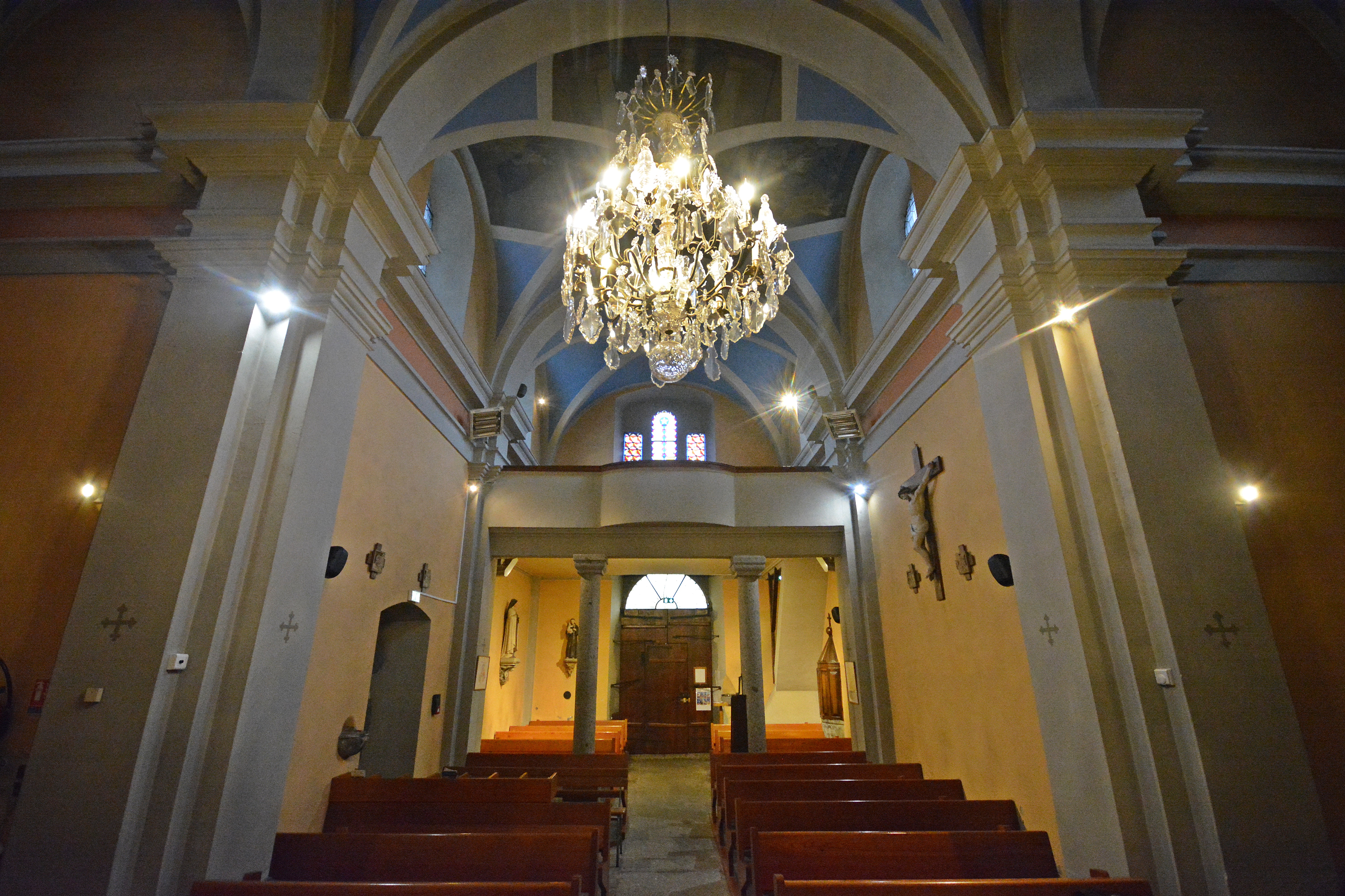 - Eglise de St Martin nef avec vue de l'entrée et du lustre central Crédit photo : Wendy Coulon