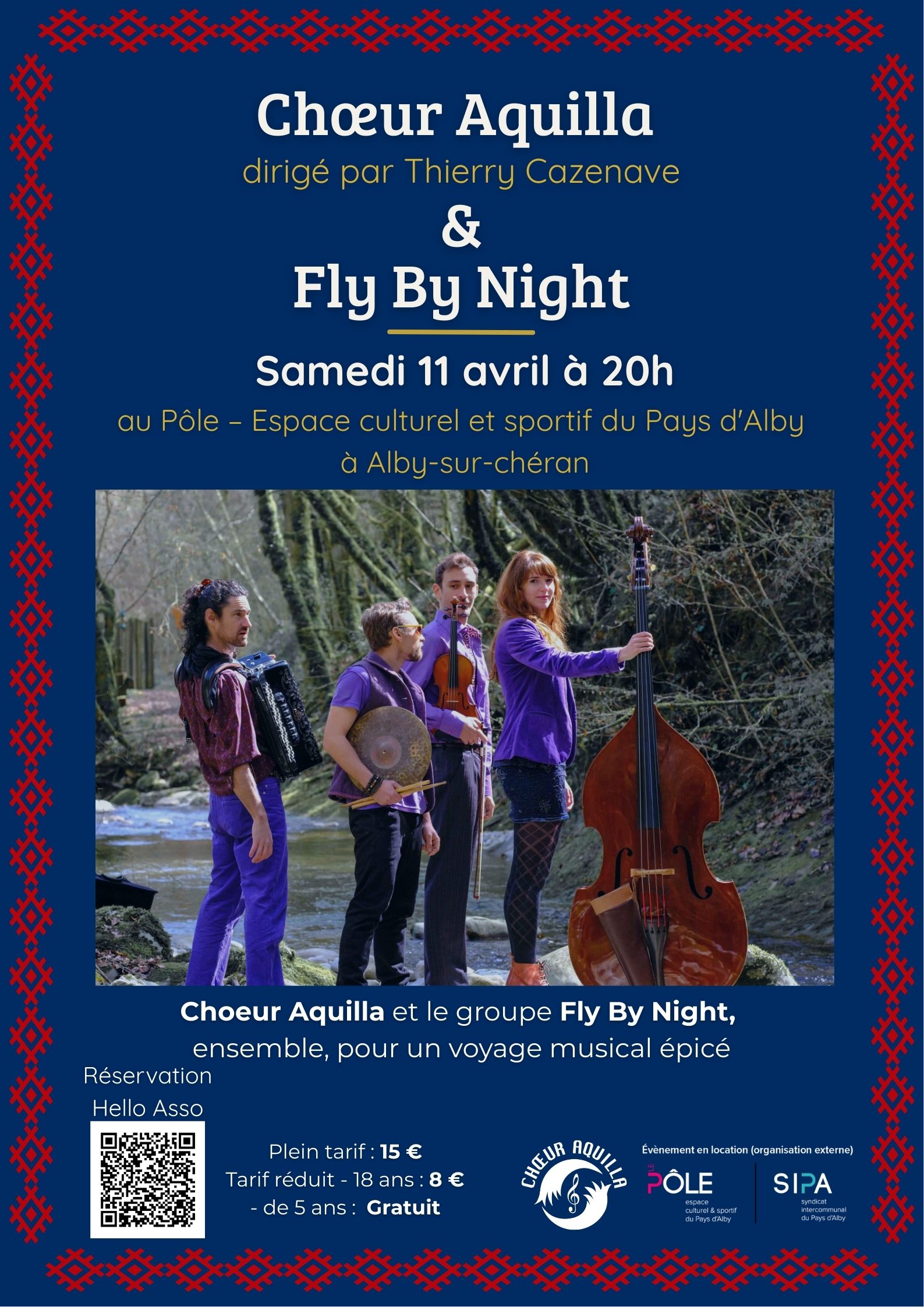 Concert Chœur Aquilla & Quatuor Fly by night A vos agendas, le Chœur Aquilla invite le groupe Fly By Night. Ce concert est né de l'envie de partager une scène locale avec le groupe. Au plaisir de vous y retrouver... Chœur Aquilla :