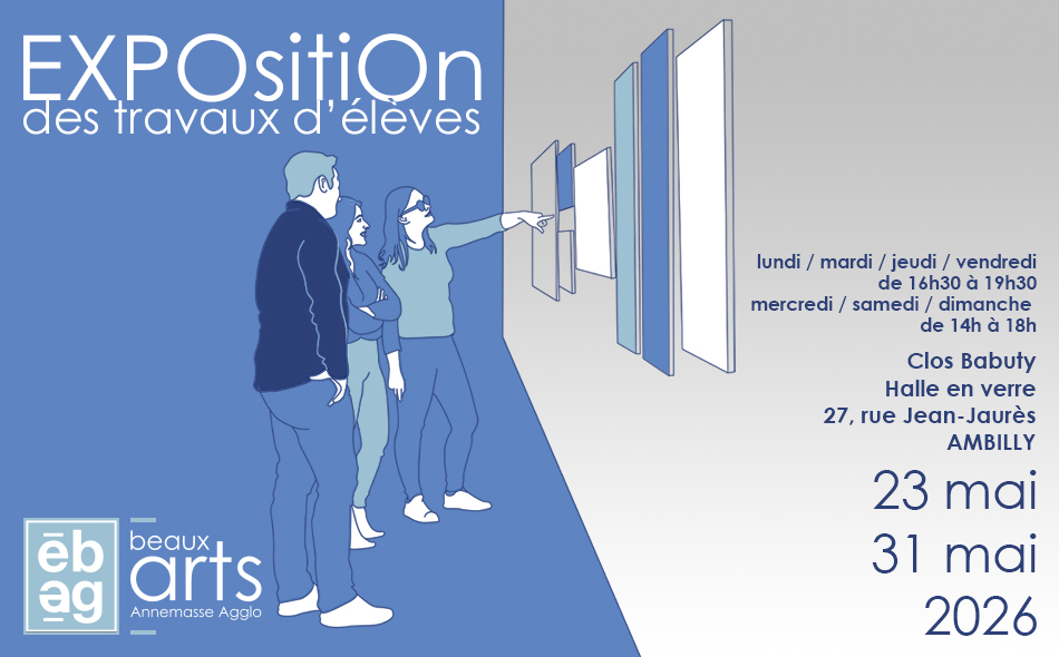 Retrouvez l’exposition annuelle des travaux de ses élèves à la Halle en Verre d’Ambilly. Cette exposition offre l’occasion de découvrir toutes la richesse et la diversité des créations réalisées tout au long de l’année par plus de 650 élèves.