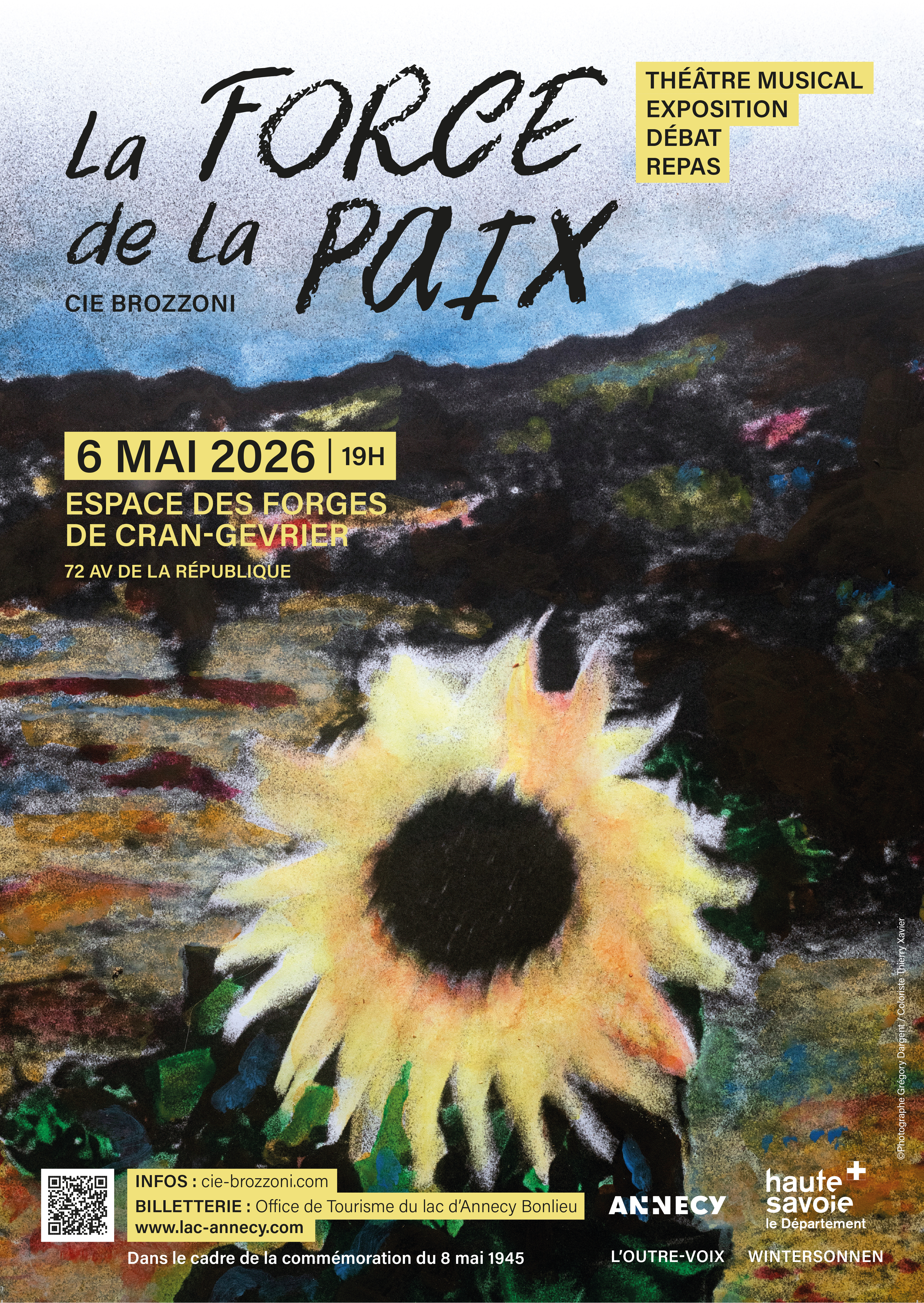 La Cie Brozzoni et ses artistes associés, Jeanne Barbieri et Grégory Dargent, vous proposent une soirée citoyenne mêlant exposition, théâtre musical, débat et repas.