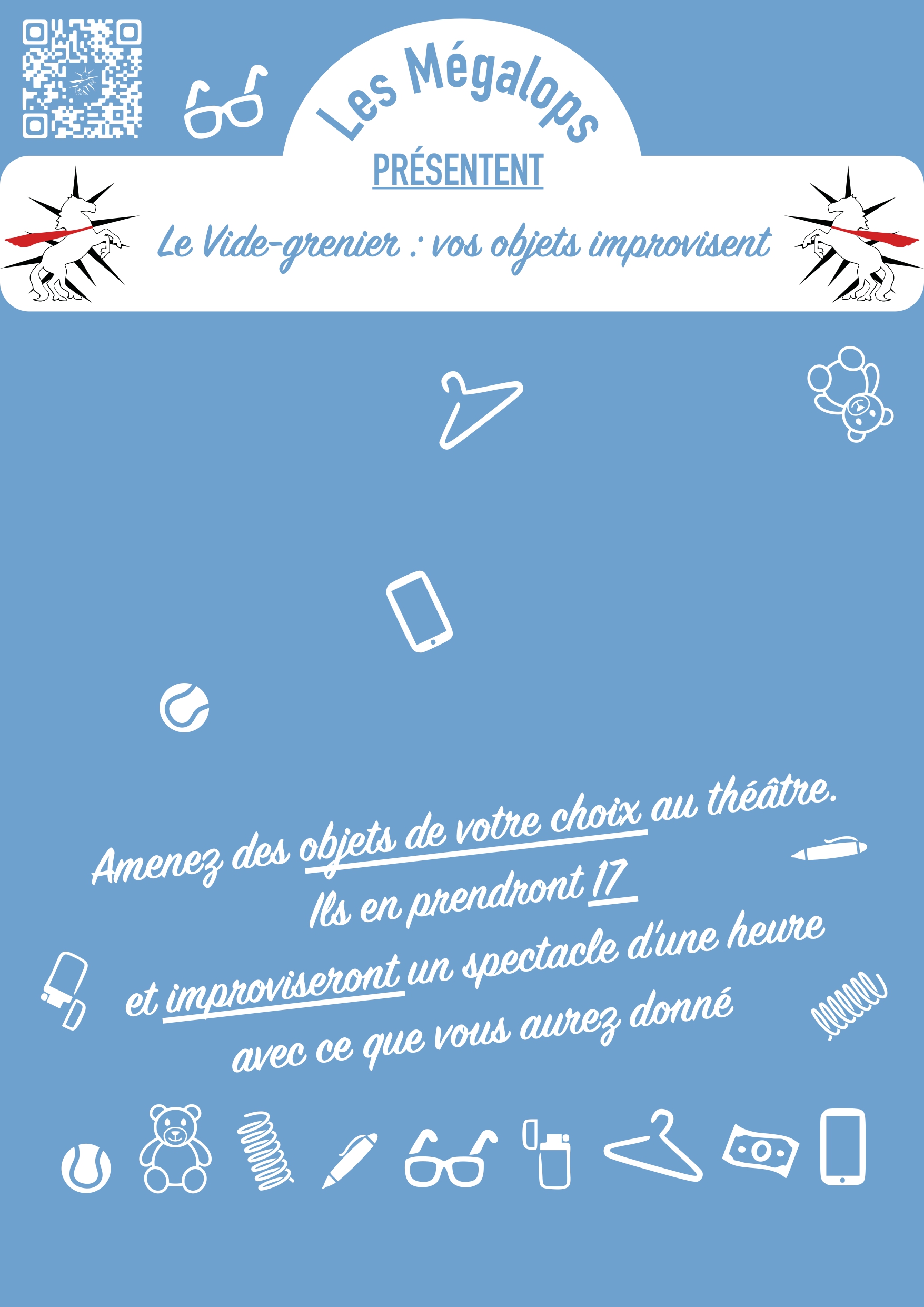 Grâce ensuite à la folie des Mégalops, 17 de vos objets prendrons une place certaine sur scène et dans nos cœurs. Ils feront partie d'une improvisation longue construite sur mesure grâce à eux, et donc grâce à vous !