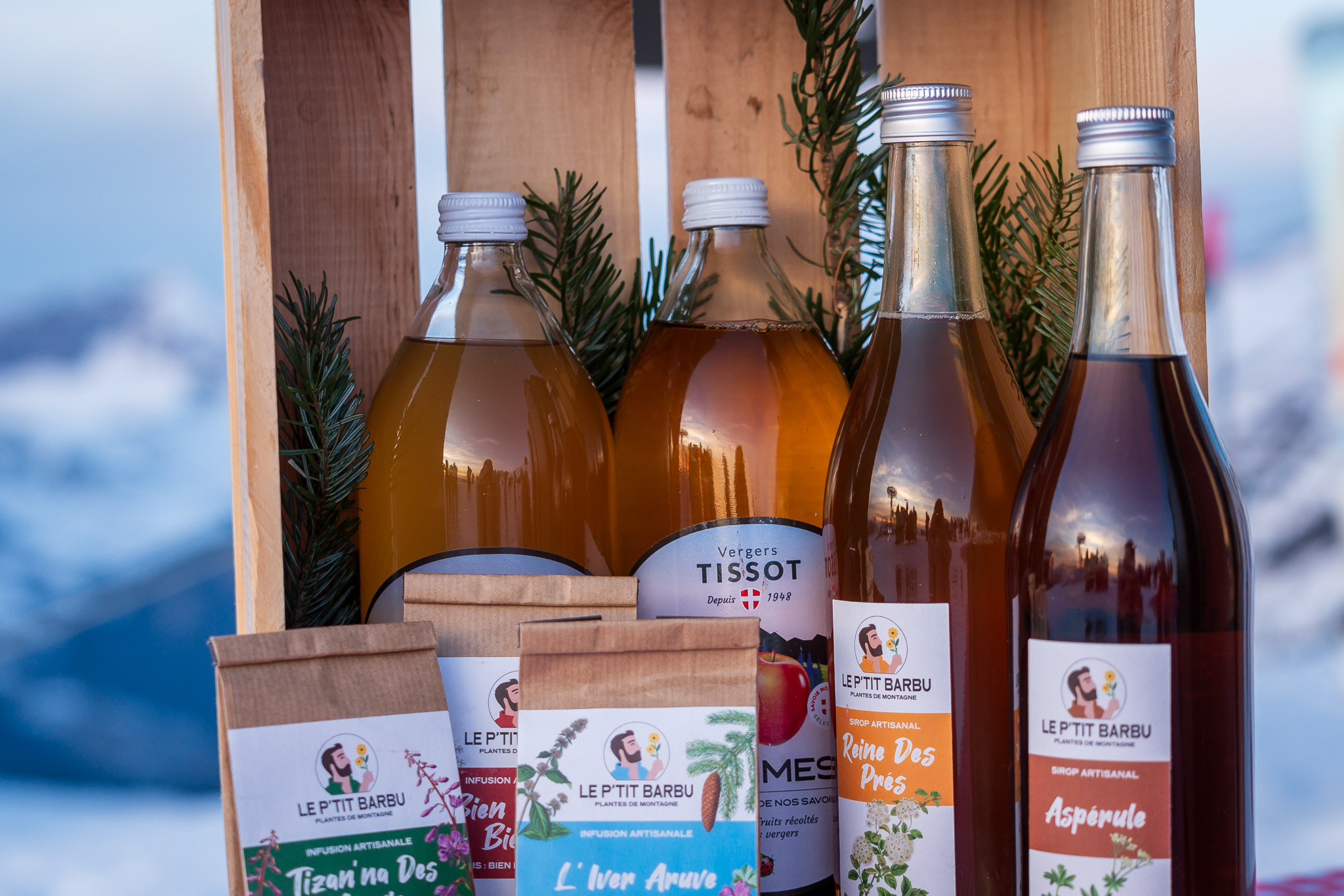 - Les produits à découvrir : les sirops et plantes du P'tit Barbu, les liqueurs de la Distillerie des Aravis, les jus de pommes et poires des Vergers Tissot ...