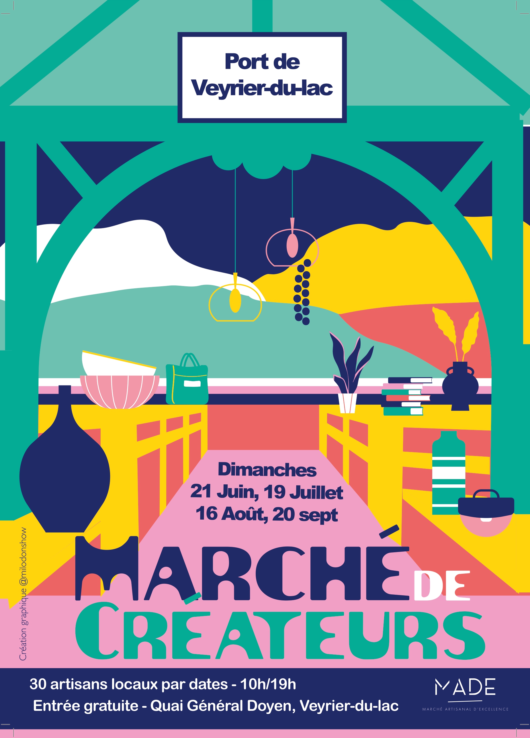 Marché alimentaire. Le marché comprend généralement les étalages suivants : fruits et légumes, traiteur, fromage et ponctuellement bijoux ou vêtements.