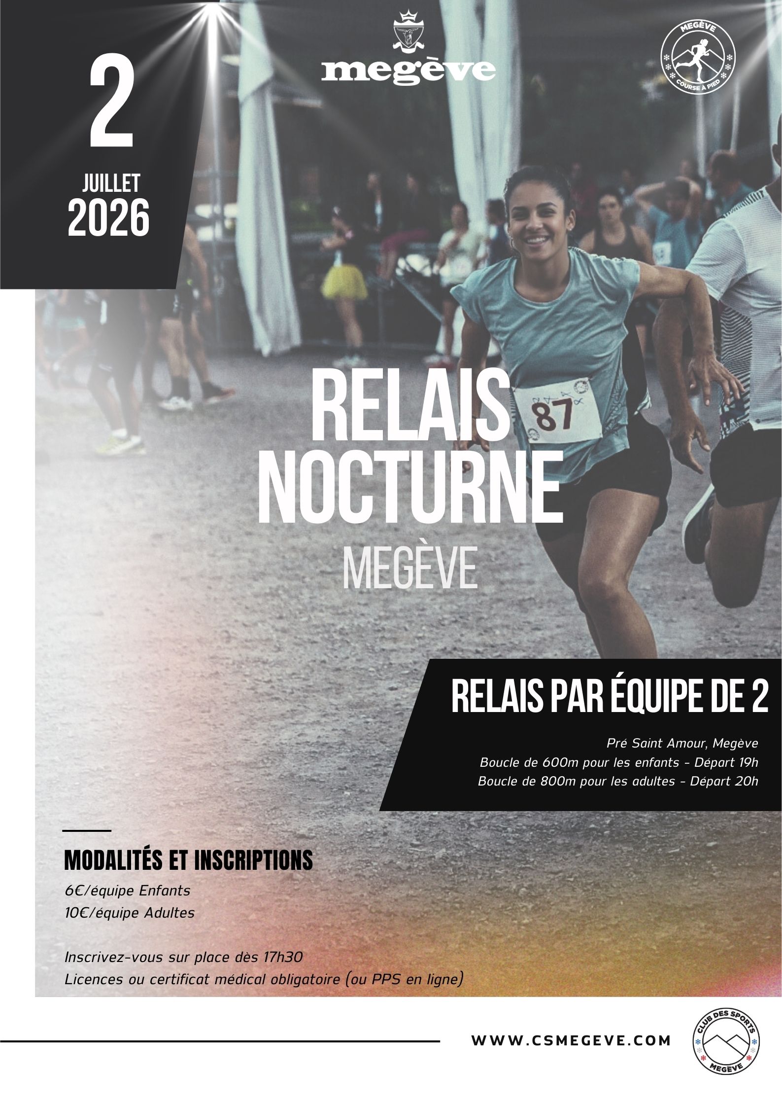 20h00 : Départ du relais adultes (boucle d'environ 800 m à effectuer plusieurs fois)