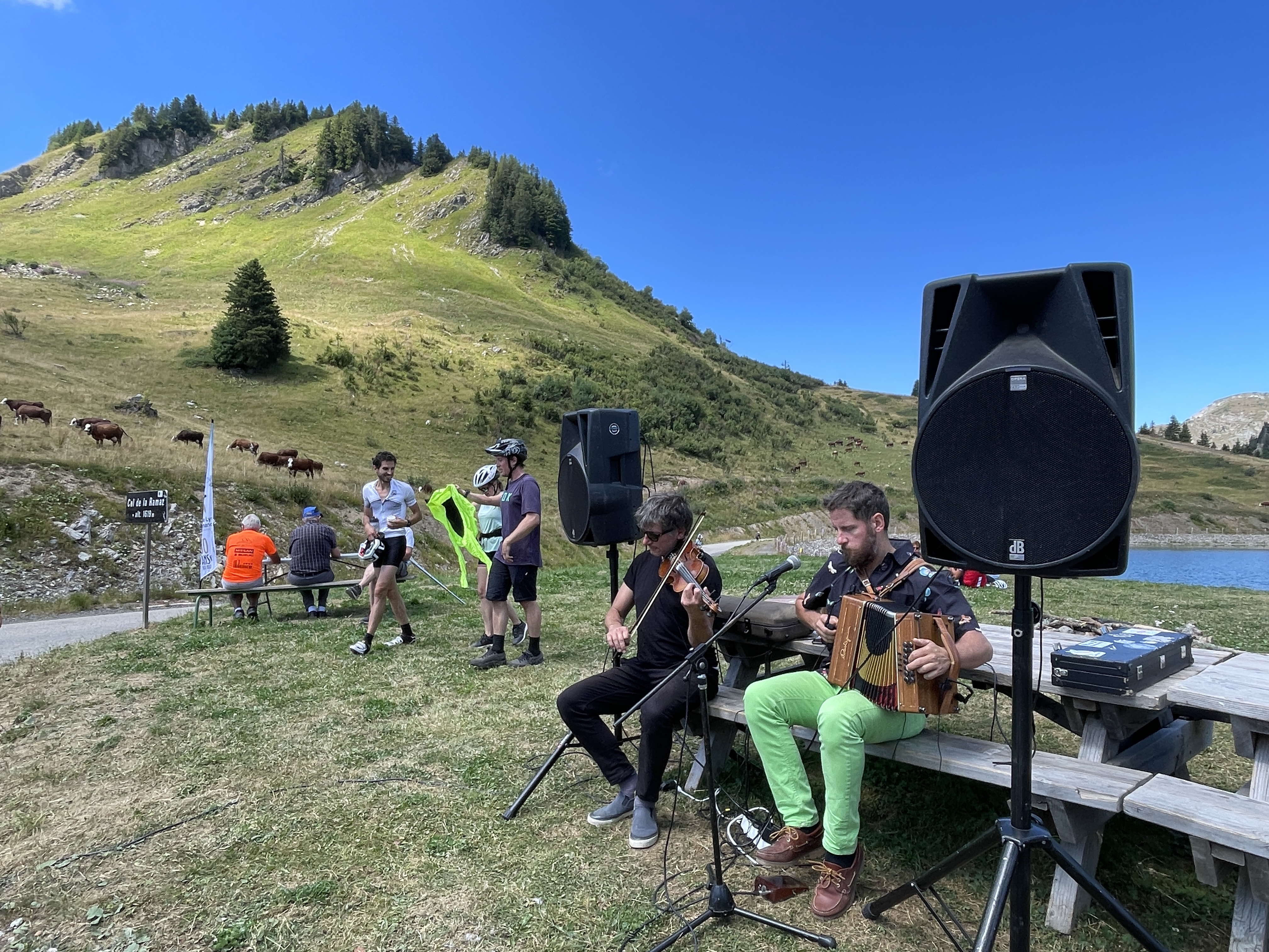 Arrivée avec ambiance conviviale au Col de la Ramaz avec un ravitaillement et nos bénévoles pour vous accueillir !