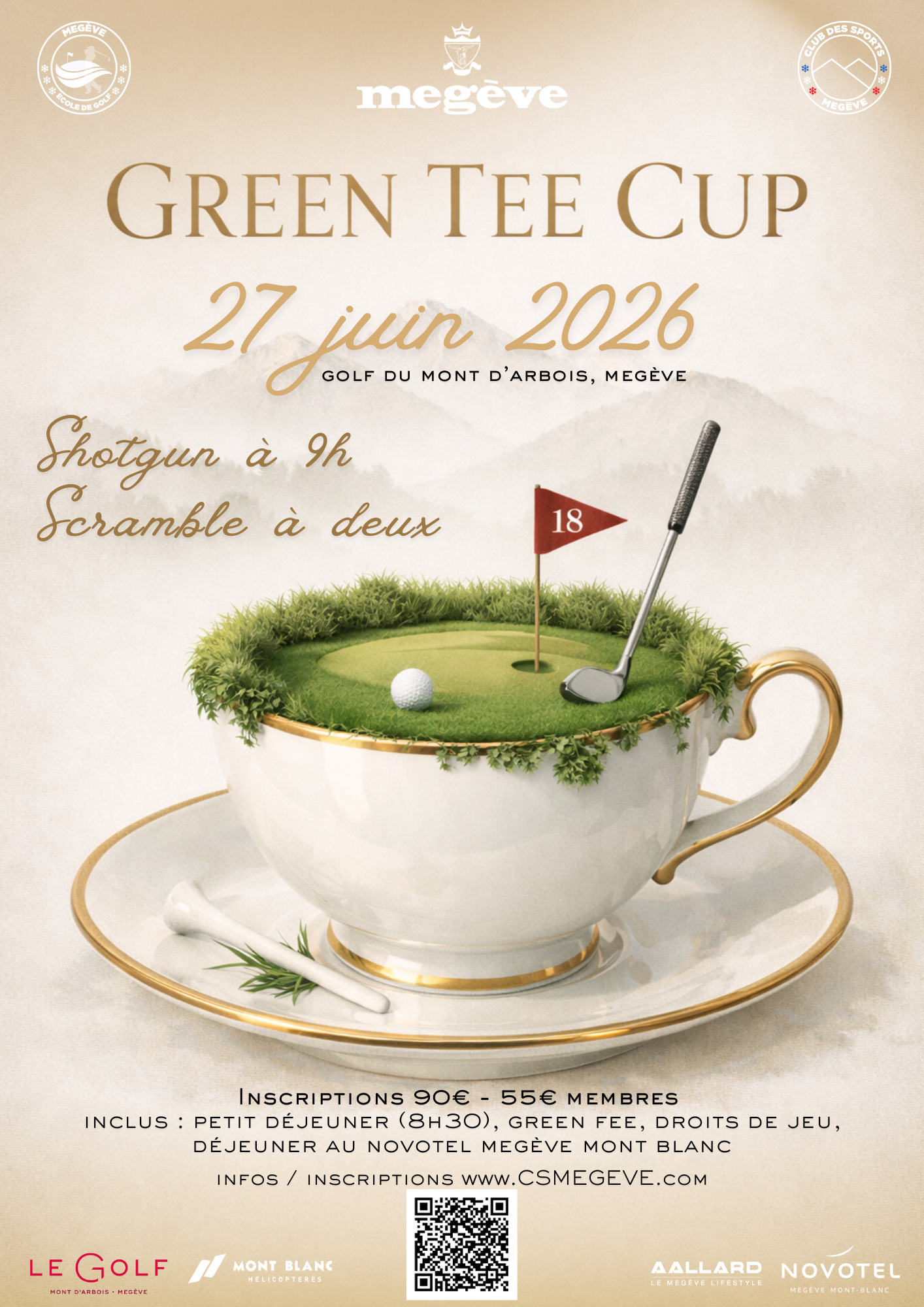 L’inscription inclus : Green fee, droit de jeu de compétition et repas au Novotel Megève