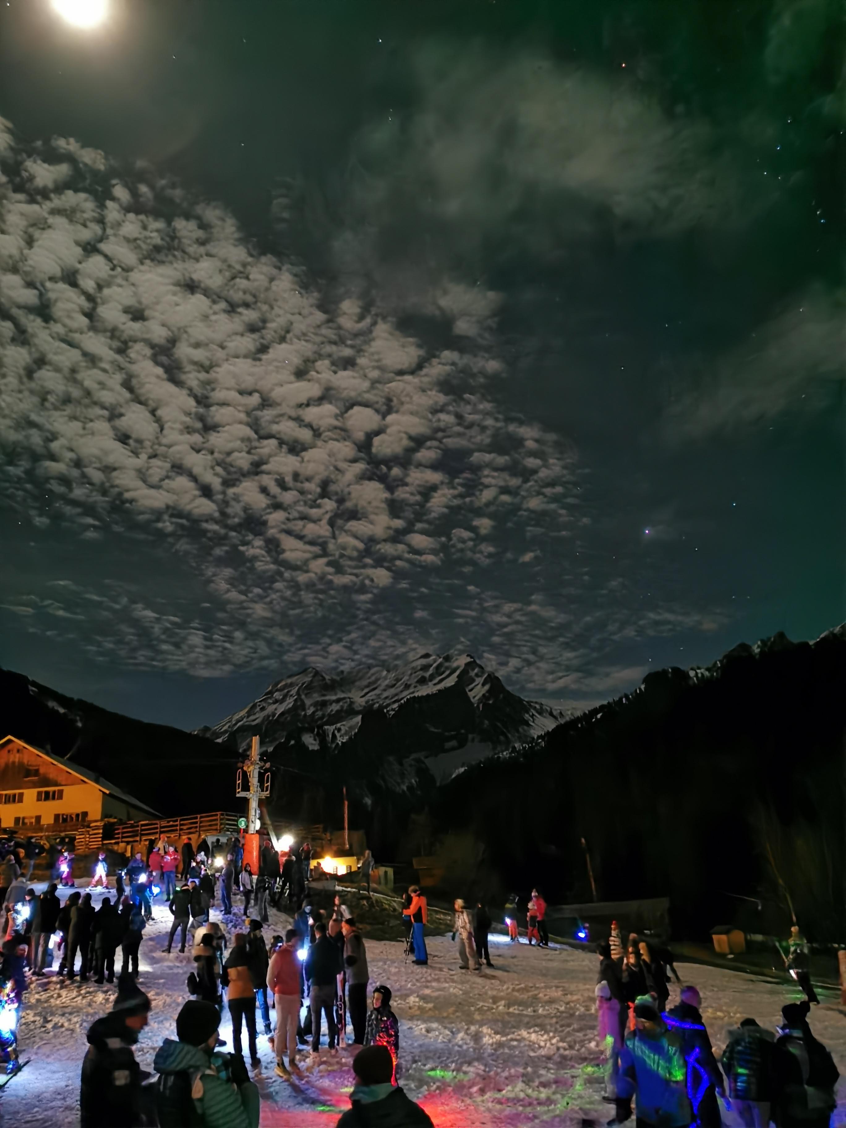 Joli spectacle lumineux sur les pistes par les moniteurs de l'ESF. Défilé de lampions par les enfants.