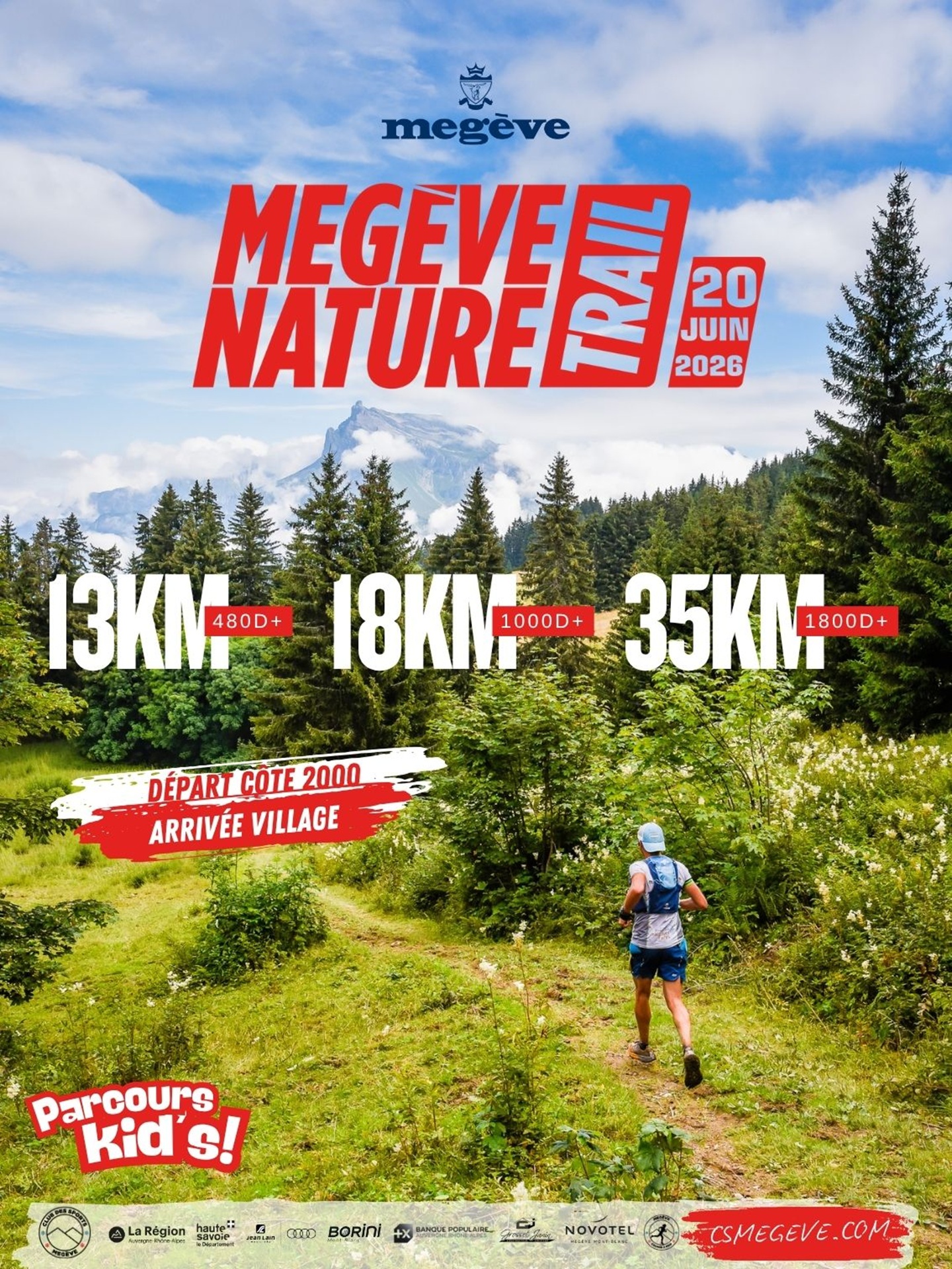 Megève Nature Trail Le temps d'un week-end, plongez dans l'univers du trail avec plusieurs formats qui conviendront aux petits comme aux grands. Dans un paysage à couper le souffle et dans une ambiance festive, tout le monde trouvera le parcours qui lui convient ! Nouveauté 2026 : un départ depuis la Cote 2000 (accès navettes), direction les crêtes de Rochebrune et de Véry pour un panorama à couper le souffle !