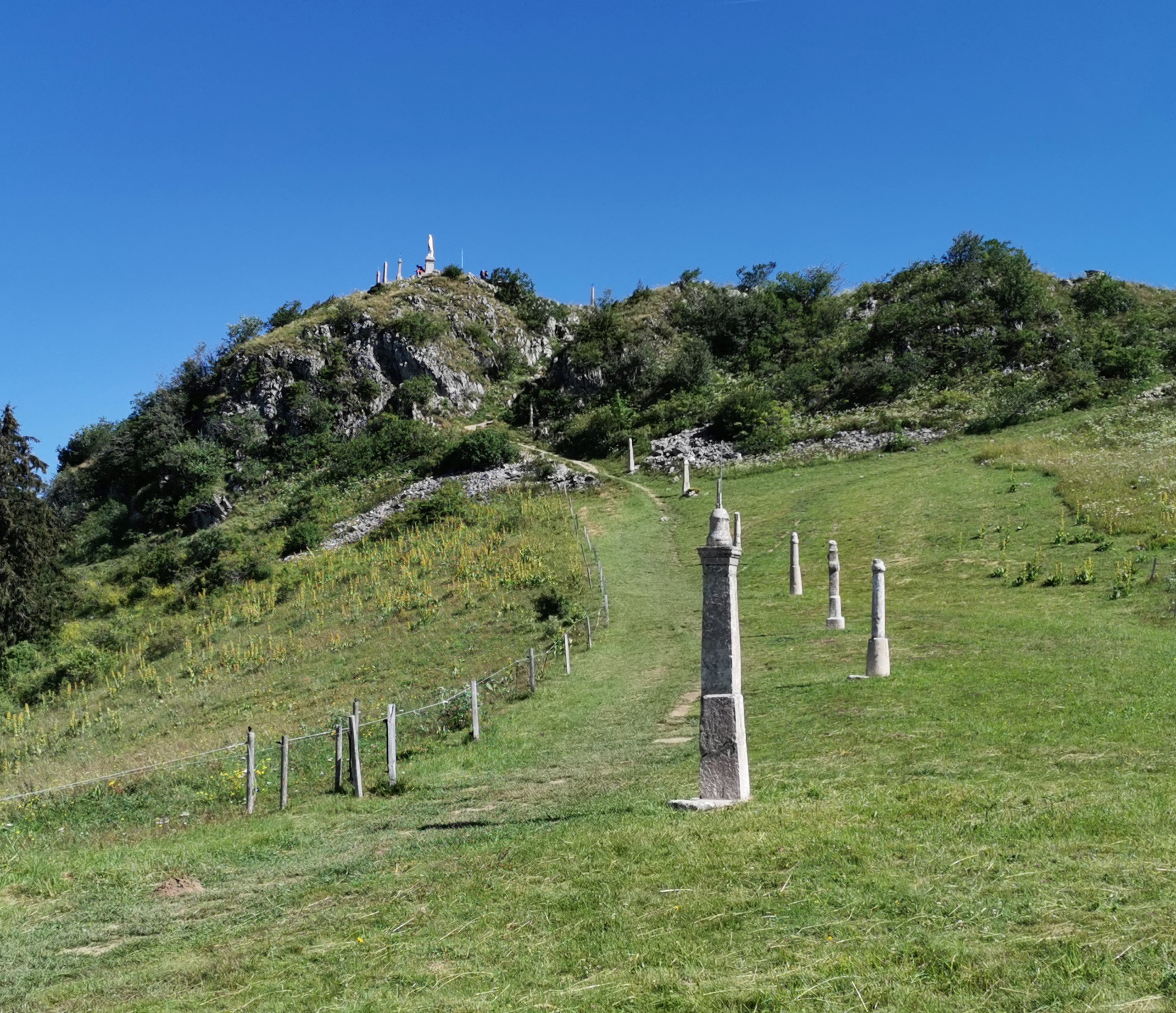 Pèlerinage de Miribel Au départ d'Ajonc, montez en direction de la Pointe de Miribel, par un joli sentier bordé d'un chemin de croix remarquable. Retour par le même chemin.