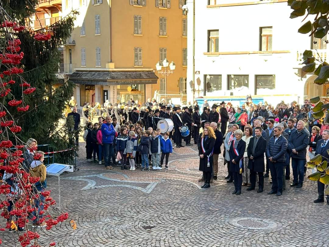 Dépôt de gerbes et cérémonie. Participation des enfants des écoles et collèges de Megève.