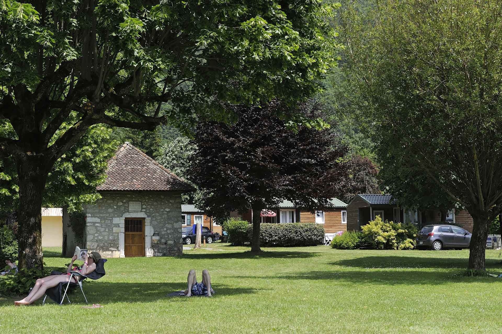 Notre camping familial, tranquille et ombragé est situé entre lac et montagnes, au pied de l'atterissage des parapentes, à 1km du lac. A proximité des chemins de randonnées pédestre et de VTT. Voie verte cyclable à proximité.