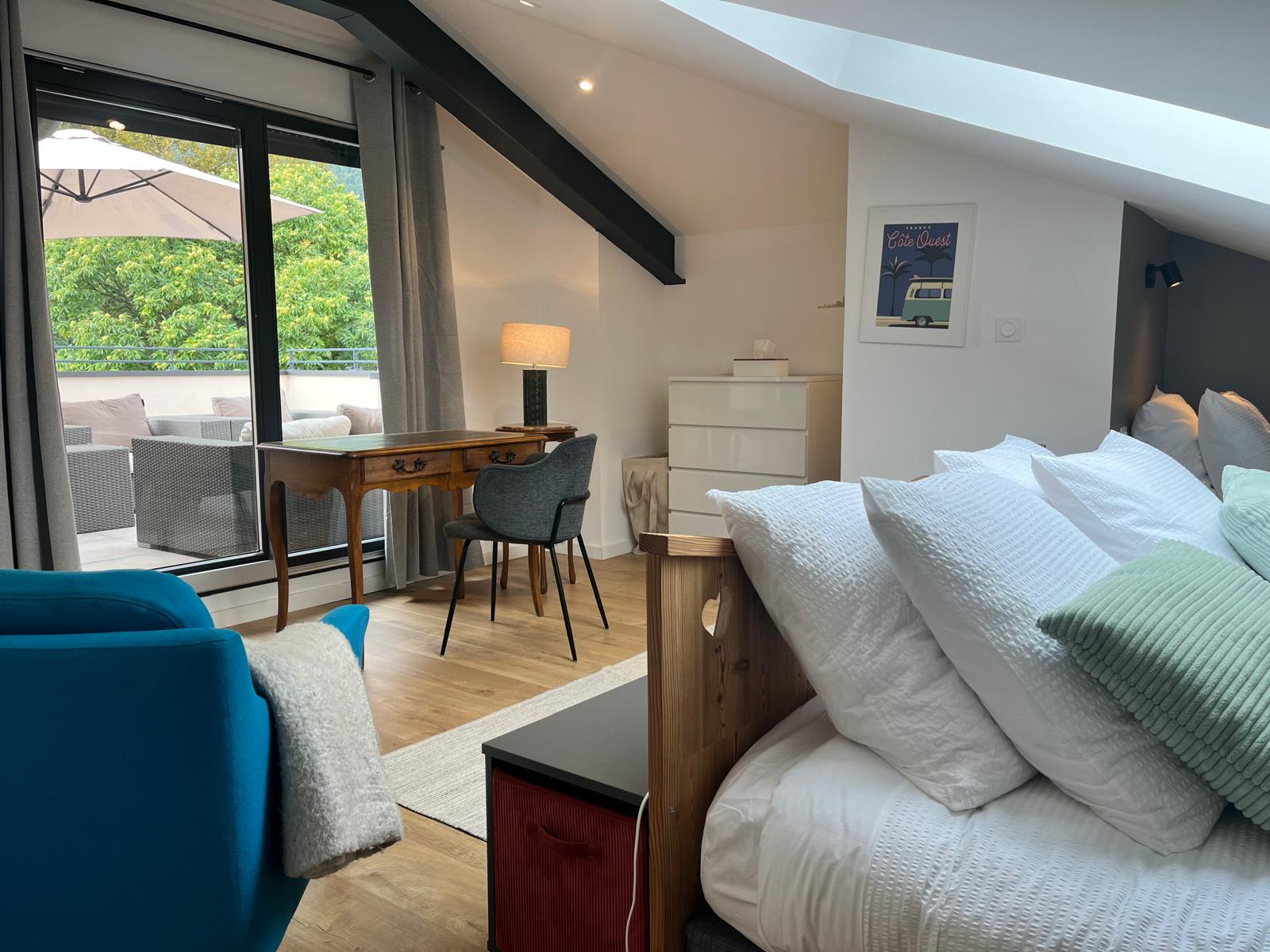 Nous vous accueillons à Sevrier entre Les Bauges et le Lac d’Annecy. Nous proposons une chambre double ou l’ensemble du dernier étage. Les petits déjeuners sont inclus. Vous partagez une salle de bain avec WC avec les autres hôtes. Vélos à disposition.