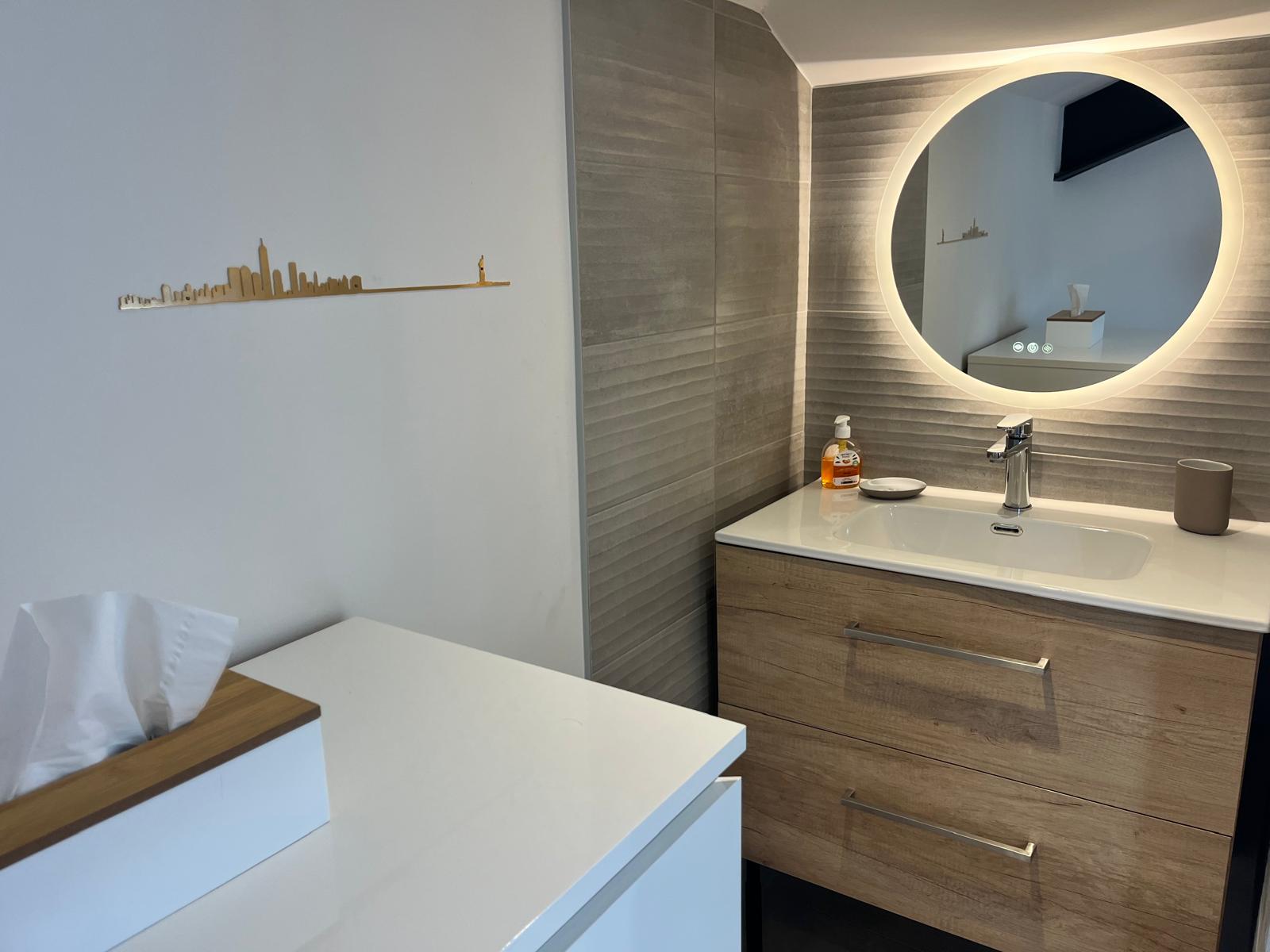 Vous partagez une salle de bain avec WC avec d'éventuels autres voyageurs. Une salle d'eau (sans douche) est disponible dans la suite "Esprit Penthouse".