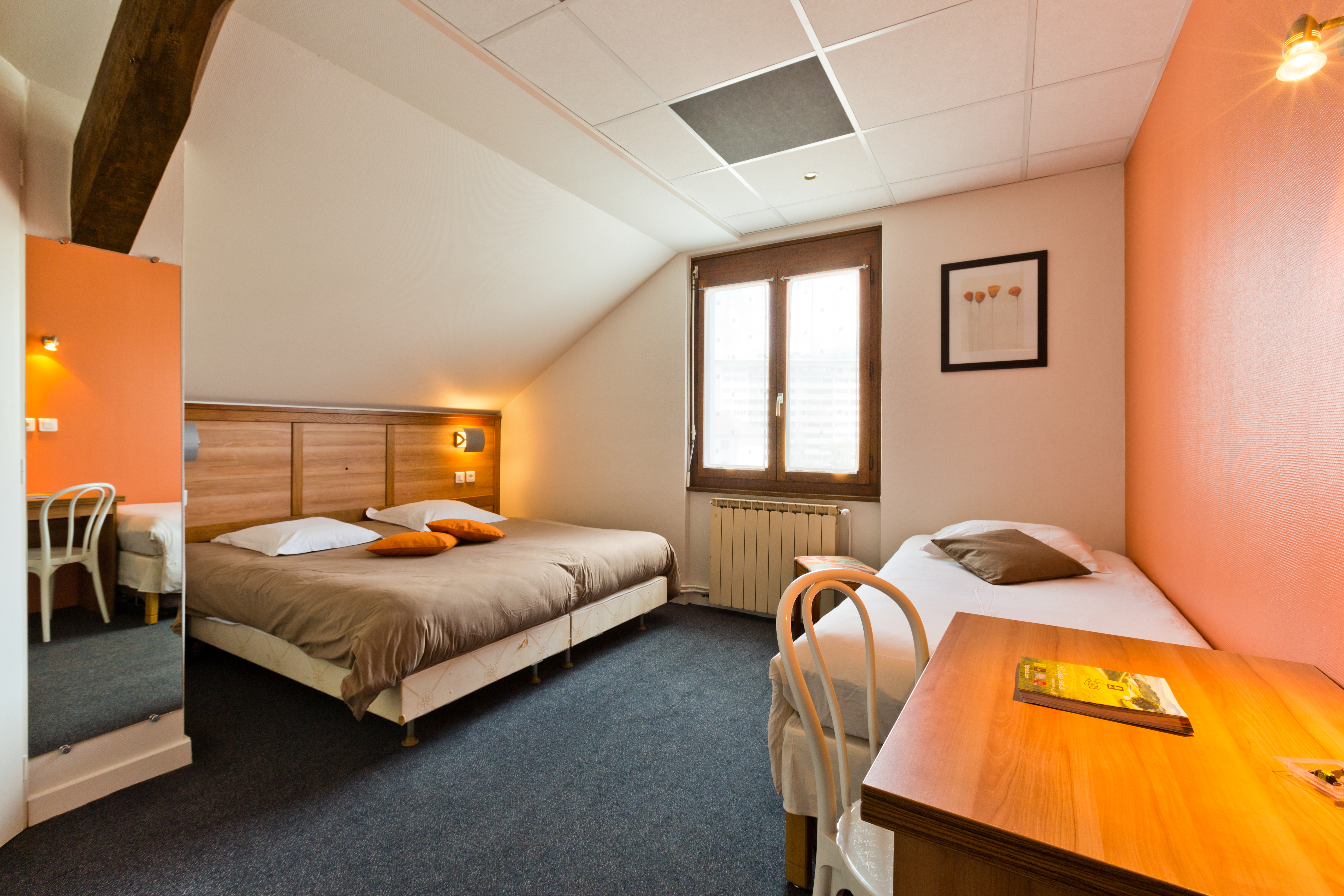 Annecy centre, vieille ville, gare immédiat, 8 min à pied du lac. L'hôtel des Alpes 2 étoiles rénové, TV, Wifi gratuit. Parking offert 19h à 8h.