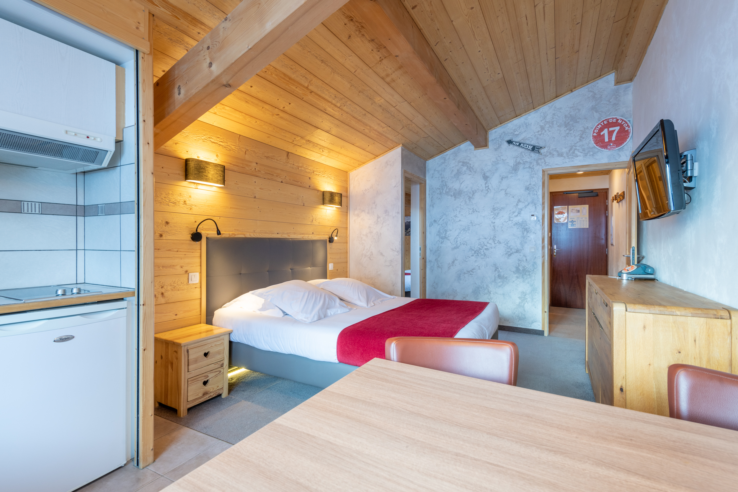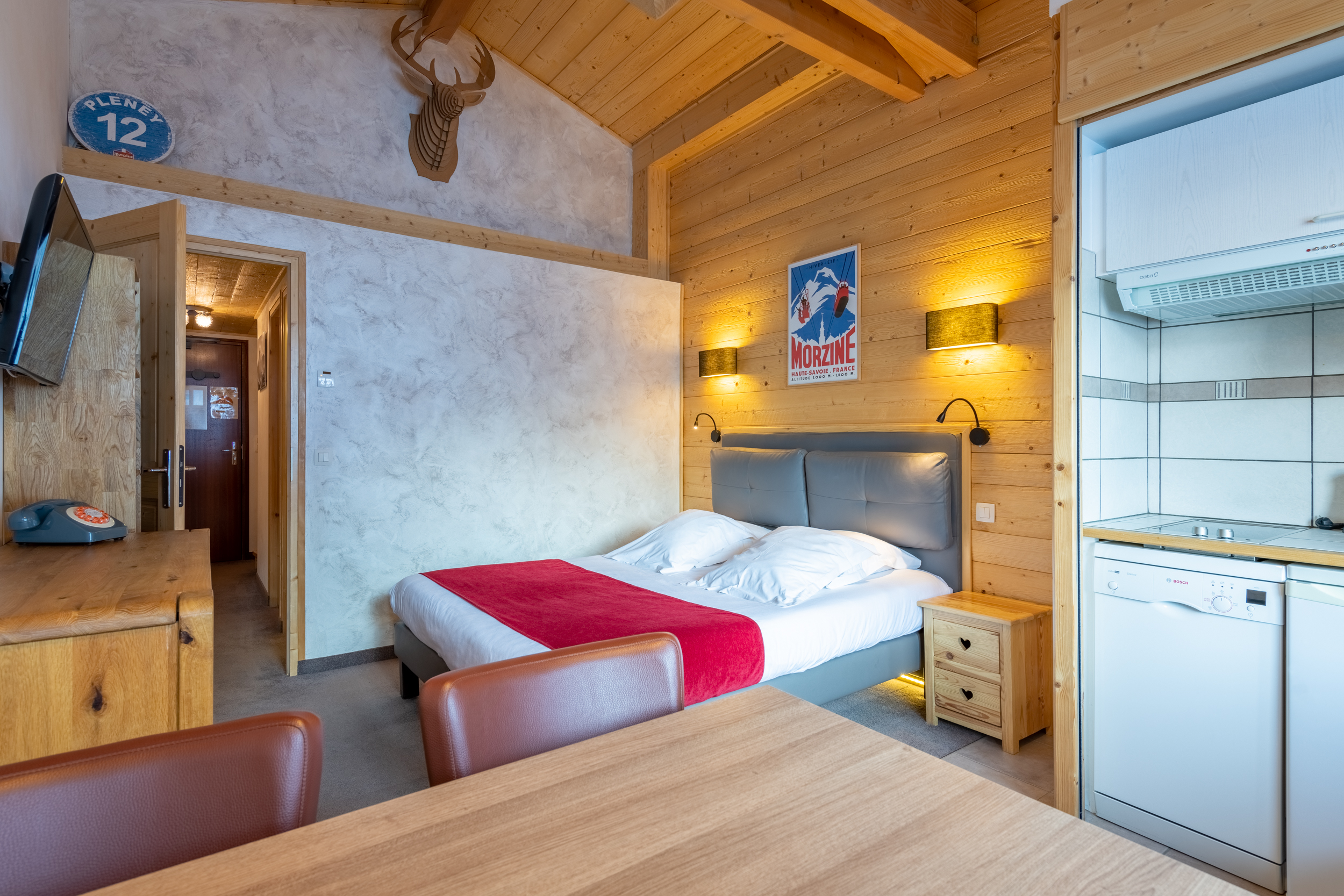 - Chambre Confort Chambre avec Kitchenette et vue Crédit photo : Hôtel Les Côtes Morzine