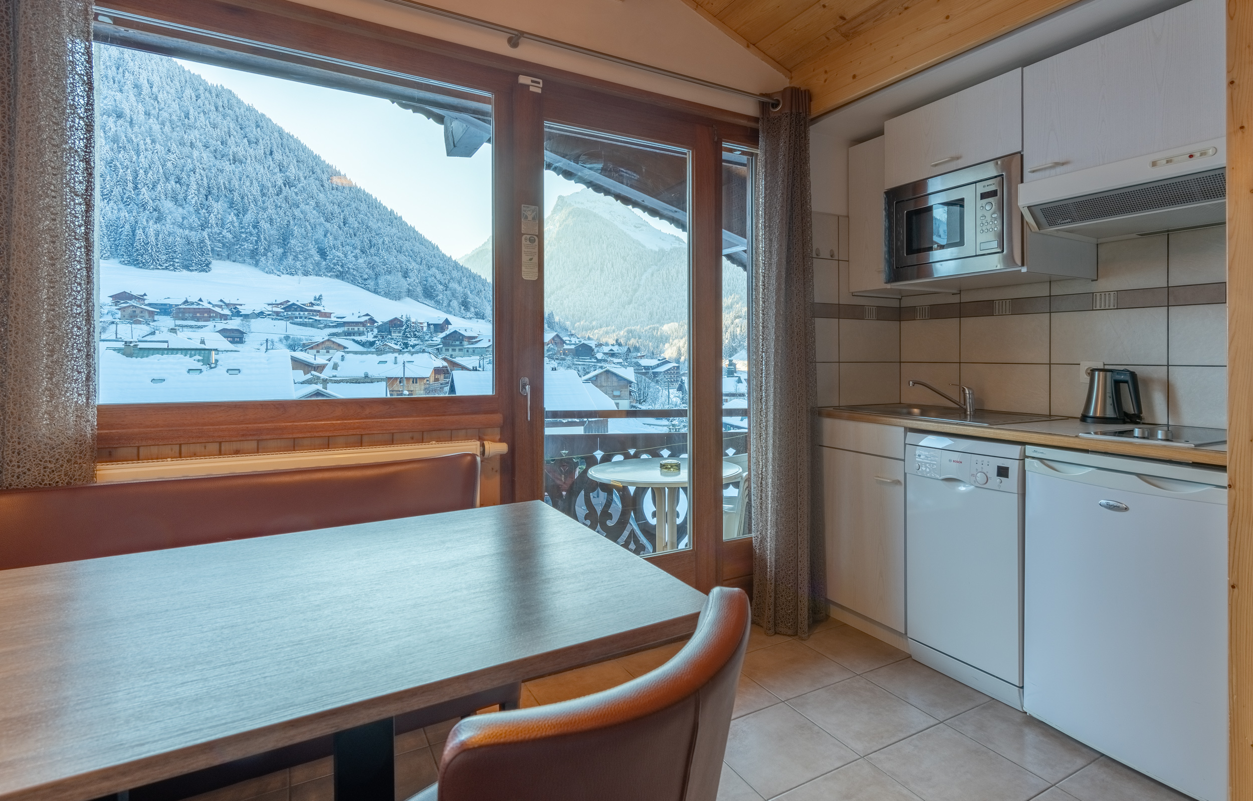 - Confort Plus Kitchenette et Balcon Vue Montagne Crédit photo : Hôtel Les Côtes Morzineel