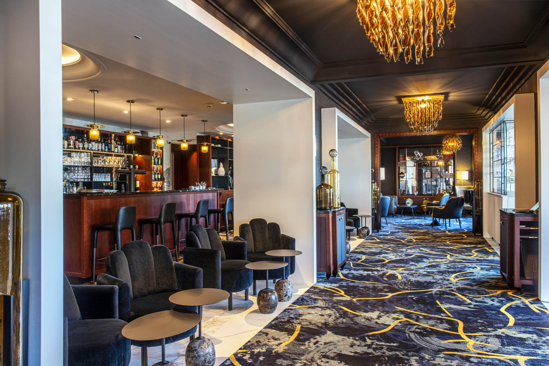29 chambres ou suites, style moderne, contemporain, à quelques pas du lac et de la vieille ville, bar avec cheminée, garage privé.