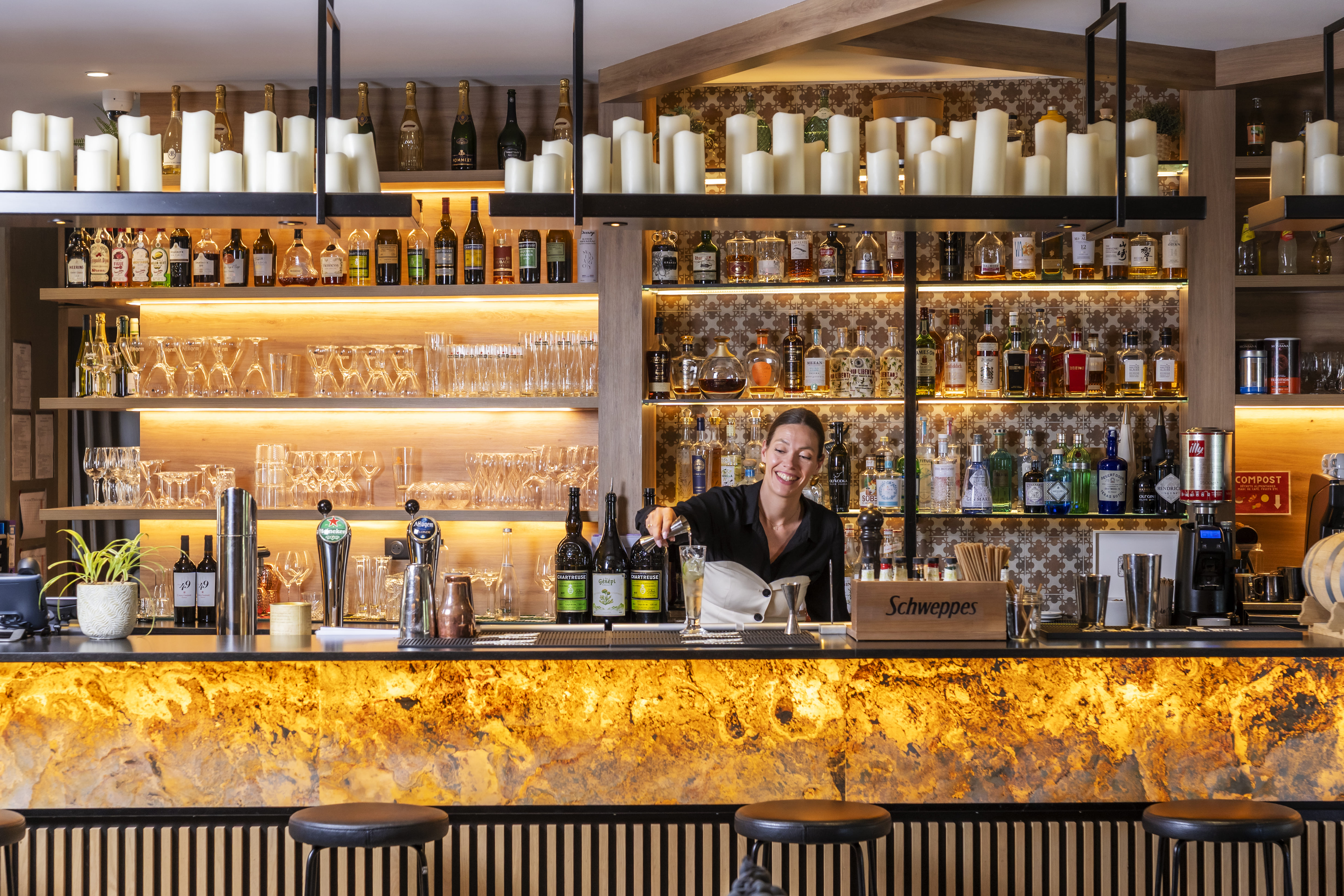 Pour vos apéritifs, déjeuners et dîners, retrouvez notre offre aux saveurs locales, plats gourmands et faits maison, assiettes à partager, produits de saison, cocktails signature, sélection de bières et de vins.