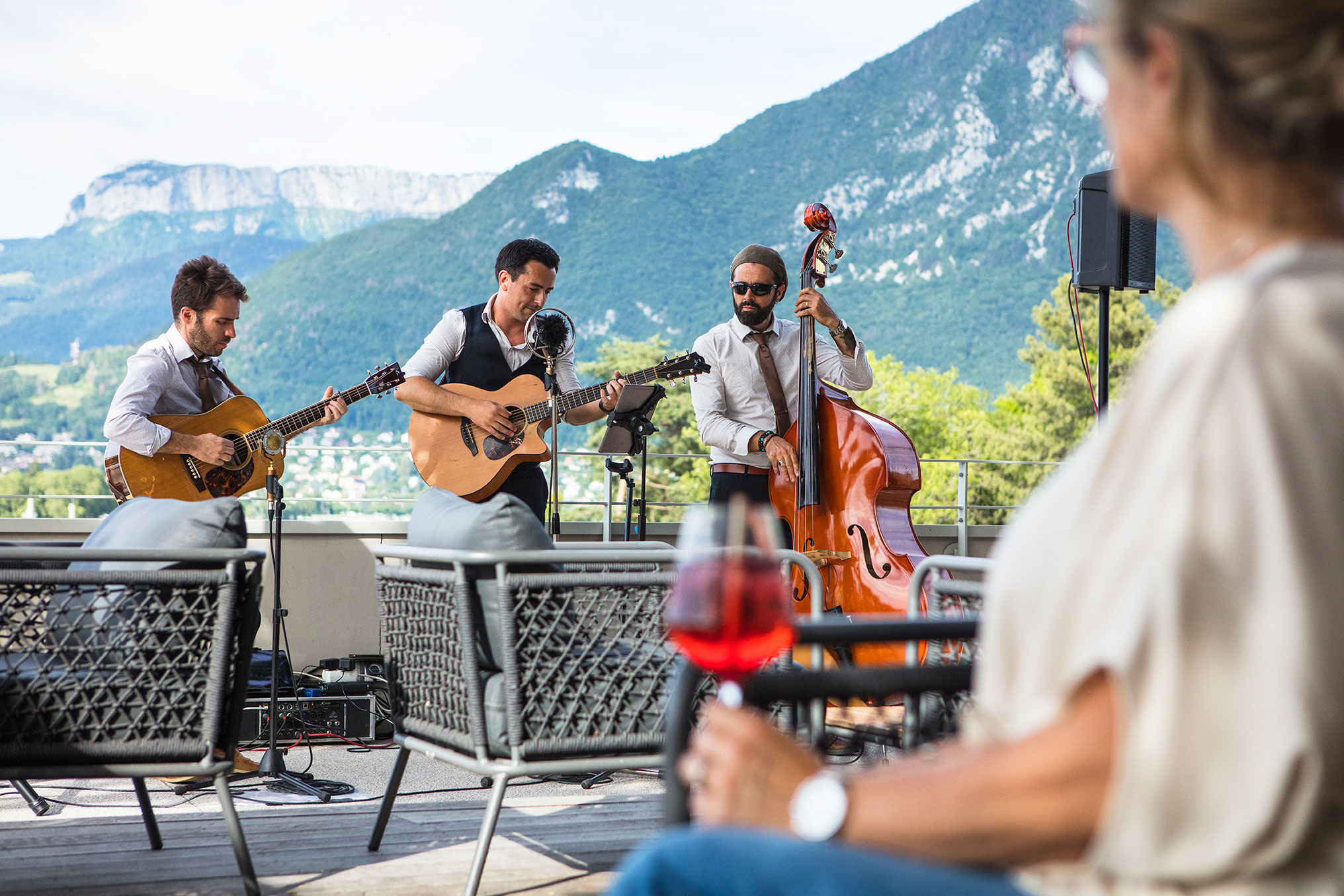 L'été, place aux artistes avec des groupes Live sur la terrasse Ô Cèdre face au lac !