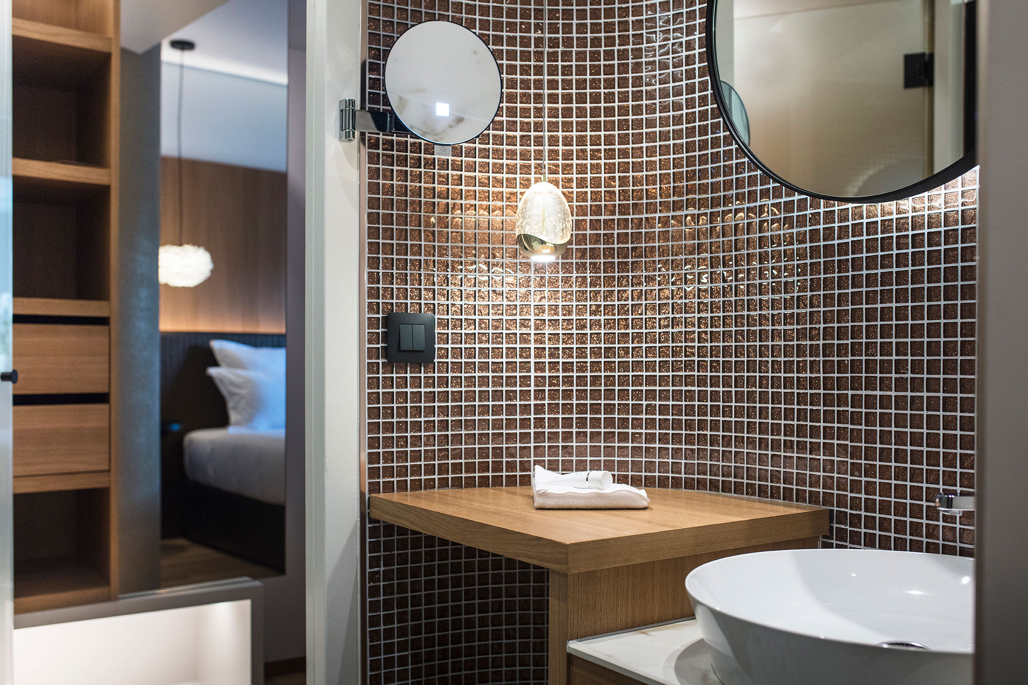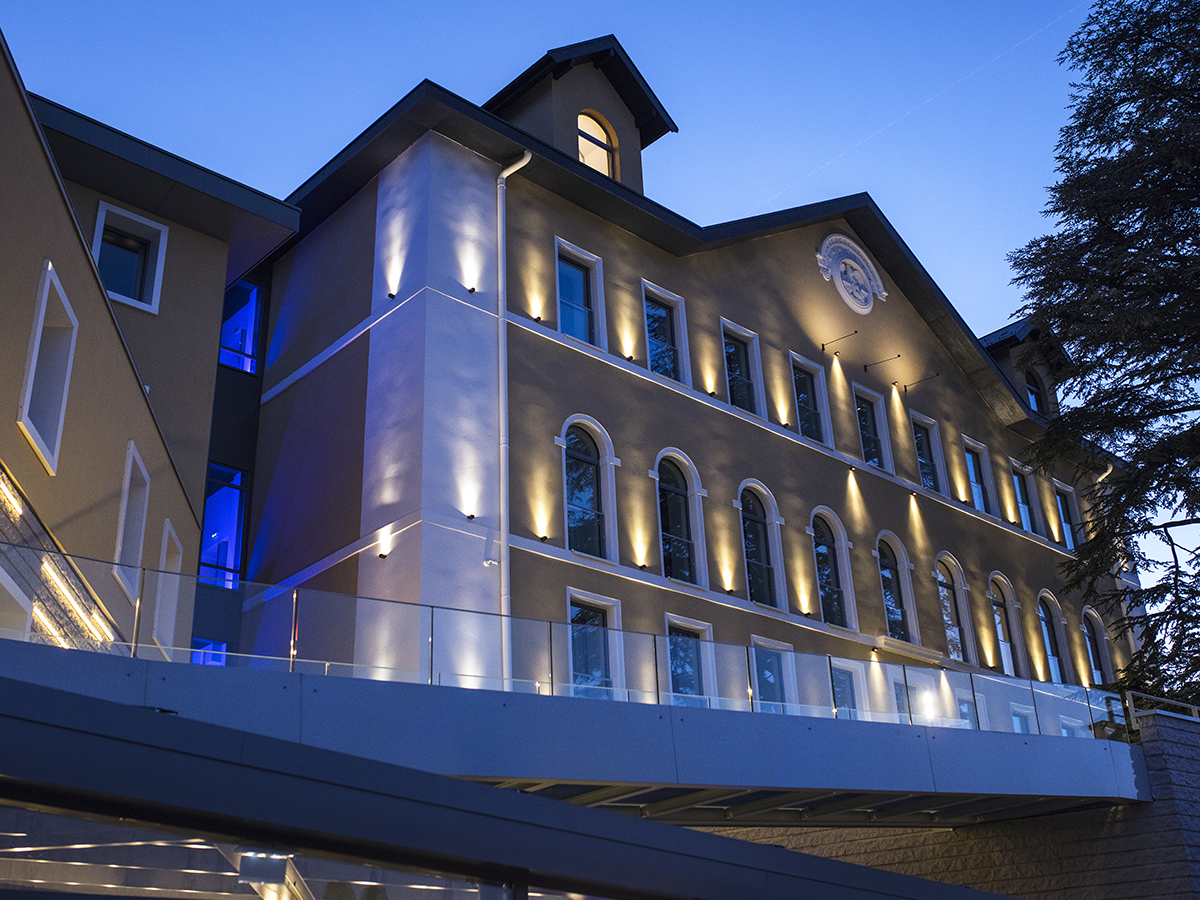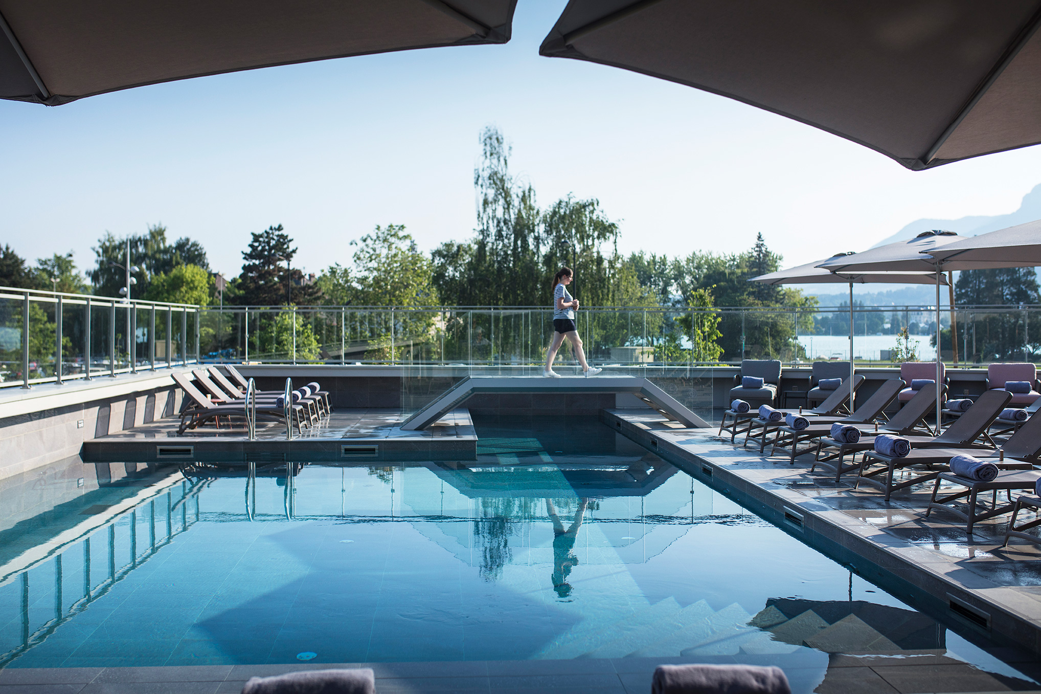 29 chambres ou suites, style moderne, contemporain, à quelques pas du lac et de la vieille ville, bar avec cheminée, garage privé.