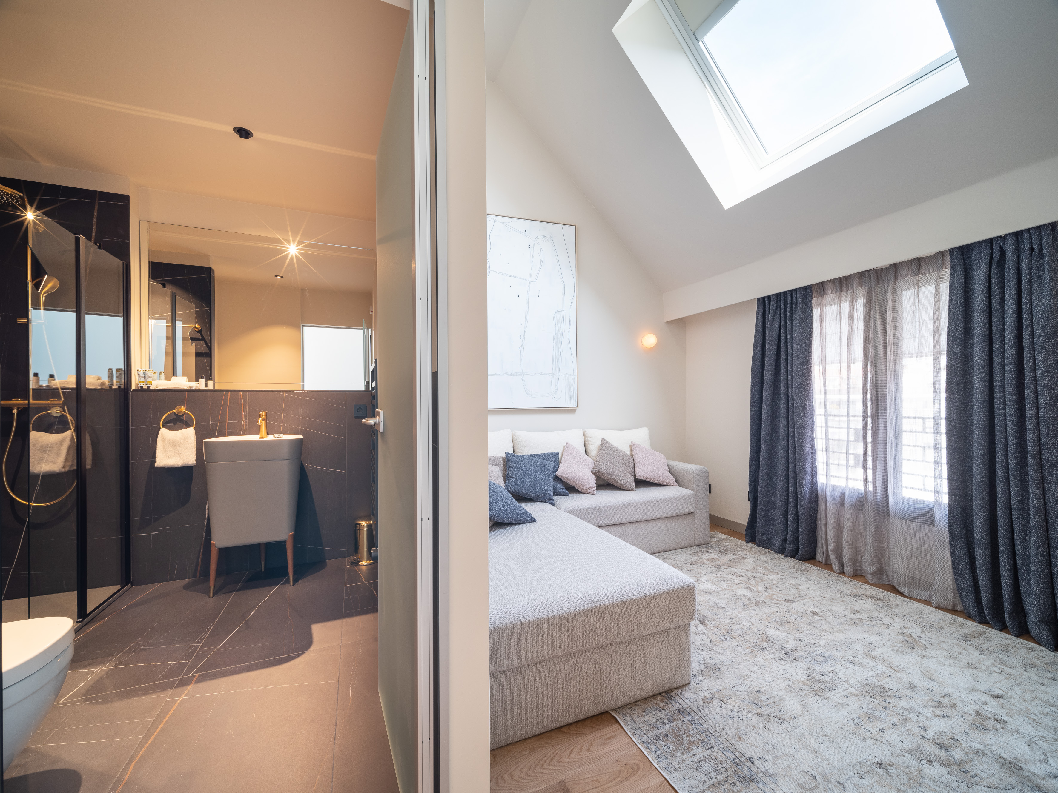 Chaque chambre dispose d’un wifi dédié, d’un grand écran plat et d’une bande son Bang & Olufsen. Qu’il s’agisse de son ou de vidéo, l’utilisation de la technologie chromecast permet au client de diffuser en wifi et de manière sécurisée les applications de son propre smartphone.