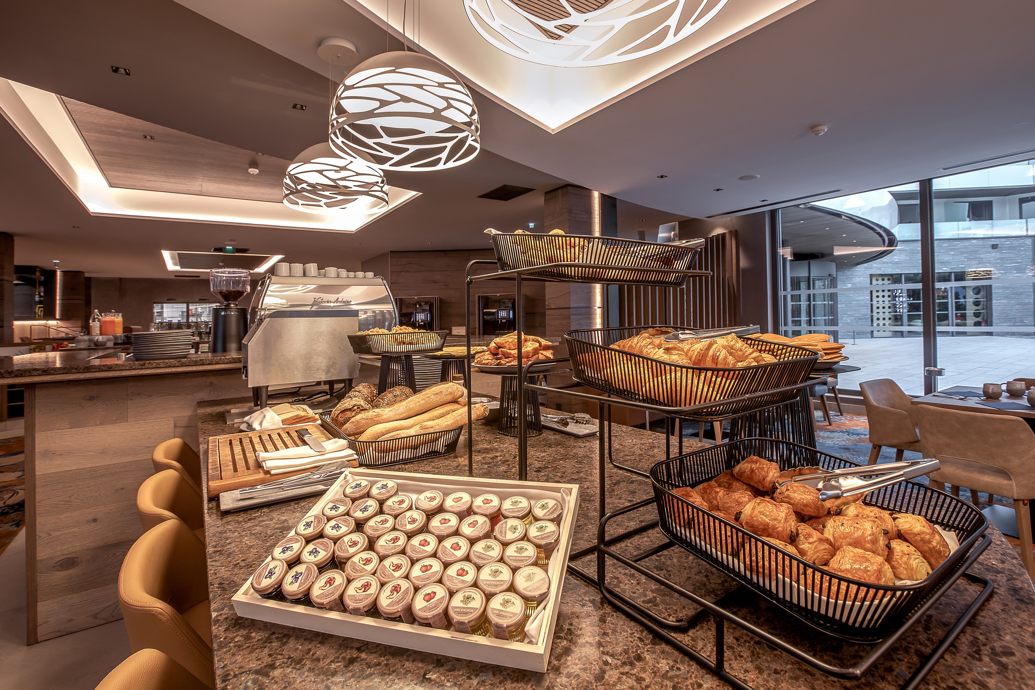 Tous les matins, vous pourrez savourer un petit-déjeuner buffet sur place. L’hôtel possède un bar, Bacari, ouvert toute la journée et proposant une carte de cocktails et de snacking et un restaurant Lona ouvert pour le déjeuner et le dîner, agrémenté d’une terrasse donnant sur le lac d’Annecy.