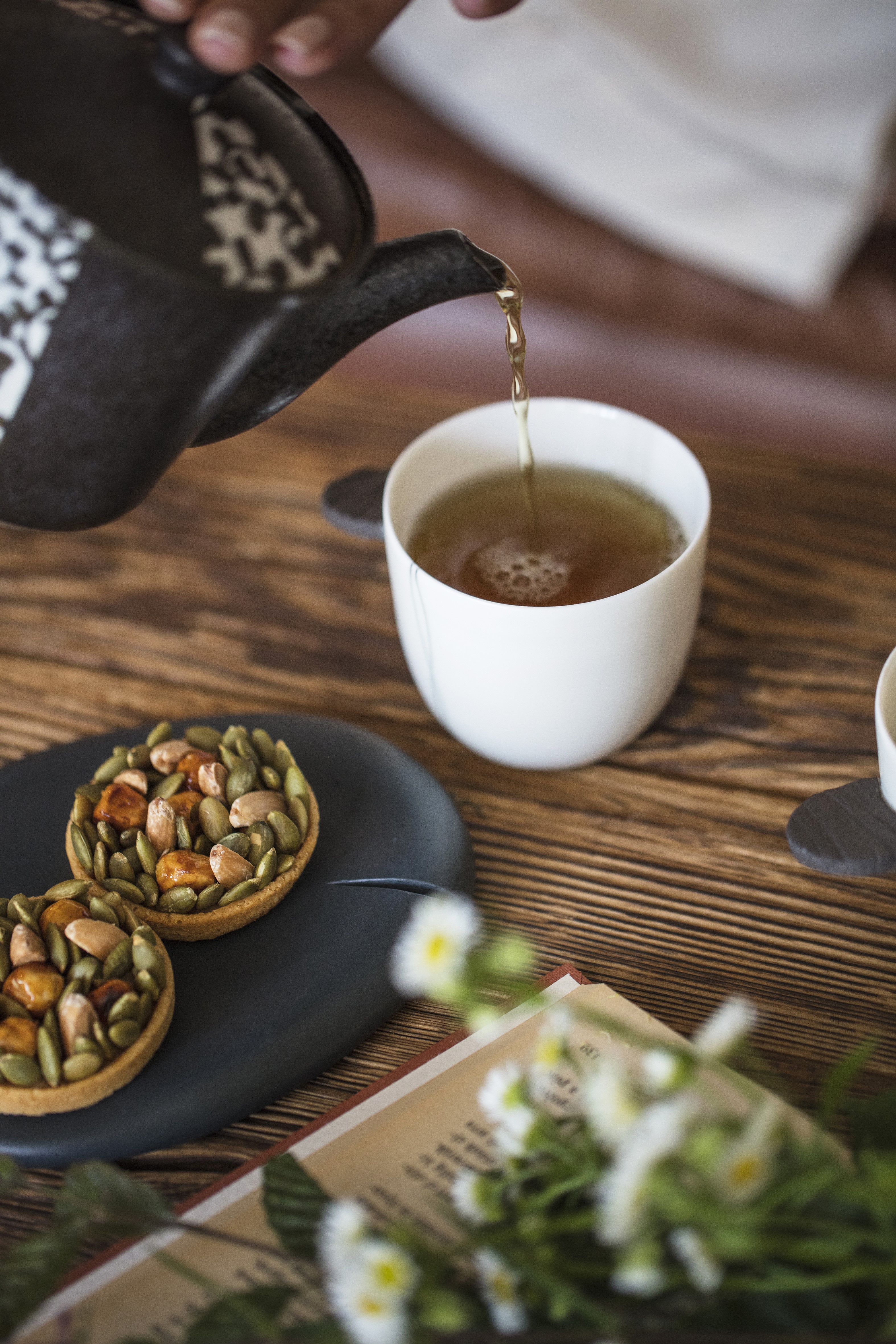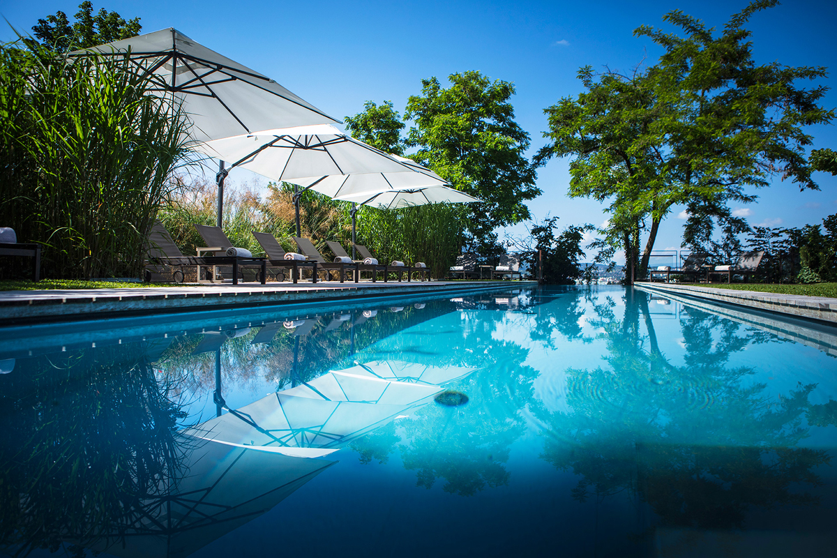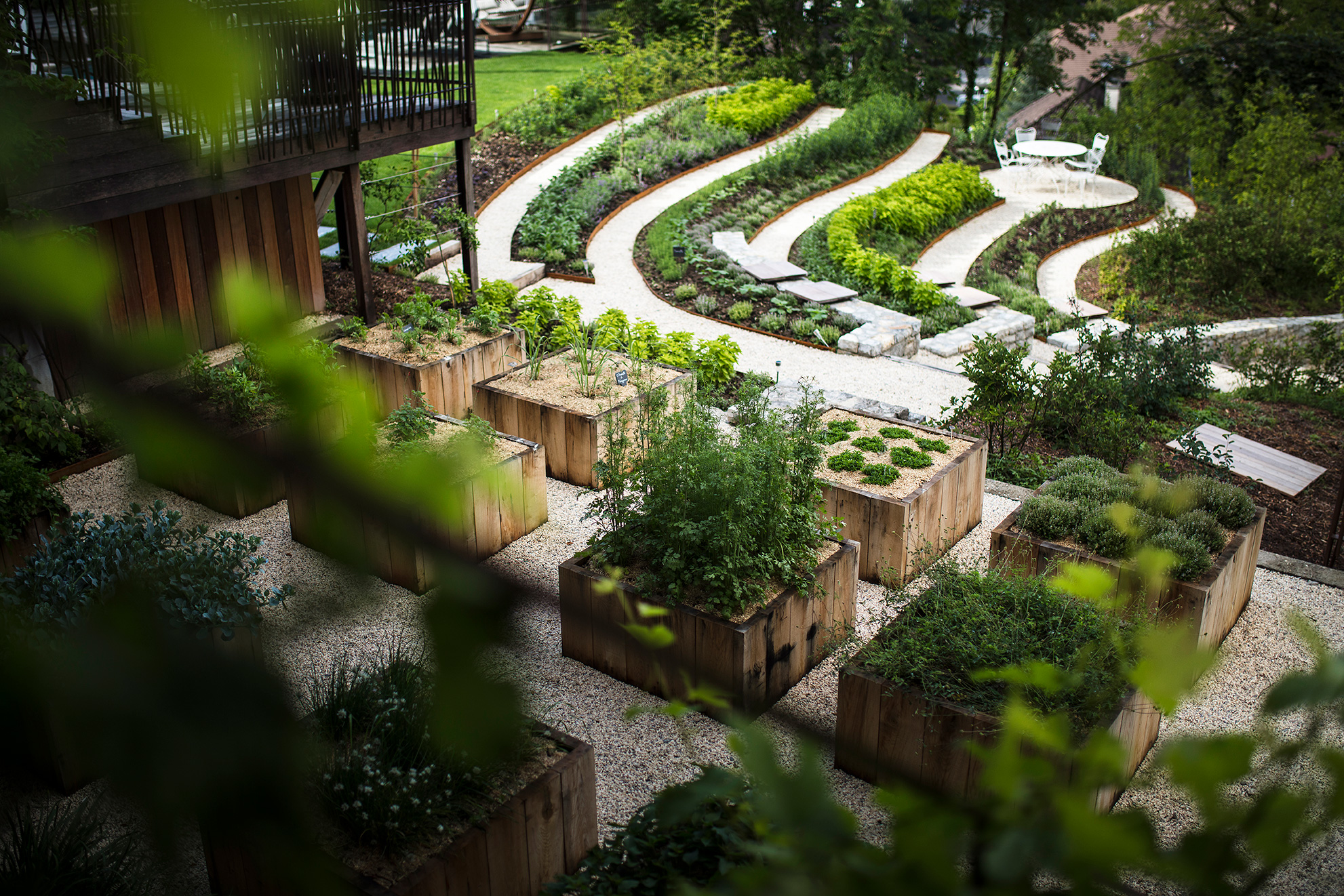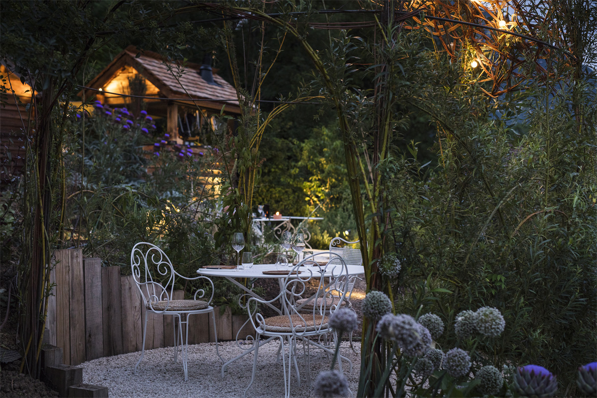 Dès les beaux jours, le cadre extérieur laissant apprécier les jardins potagers en terrasse et le couloir de nage chauffé vous invitent à la détente. La table triplement étoilée au guide Michelin met l’accent sur une cuisine lacustre et végétale ancrée dans son territoire que vous pourrez apprécier au sein de notre salle de restaurant naturelle et moderne ou à l’ombre des marronniers centenaires de la terrasse. En été, le "Cortil" éphémère au milieu du jardin d'aromates avec ses plats de partage à la braise.