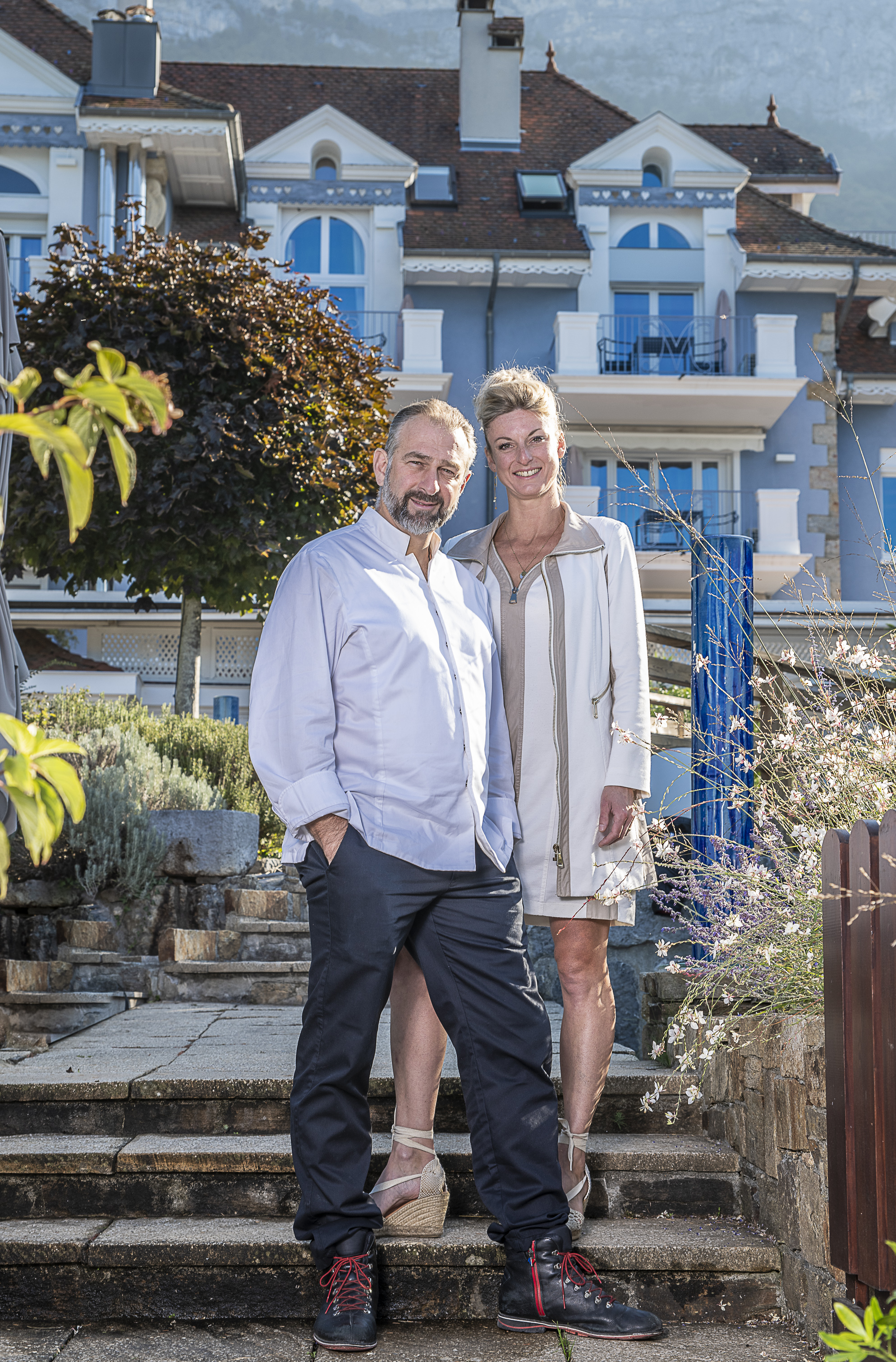 Entre lac et montagne se dresse l’accueillante et charmante Maison bleue d’Elodie et Yoann Conte.