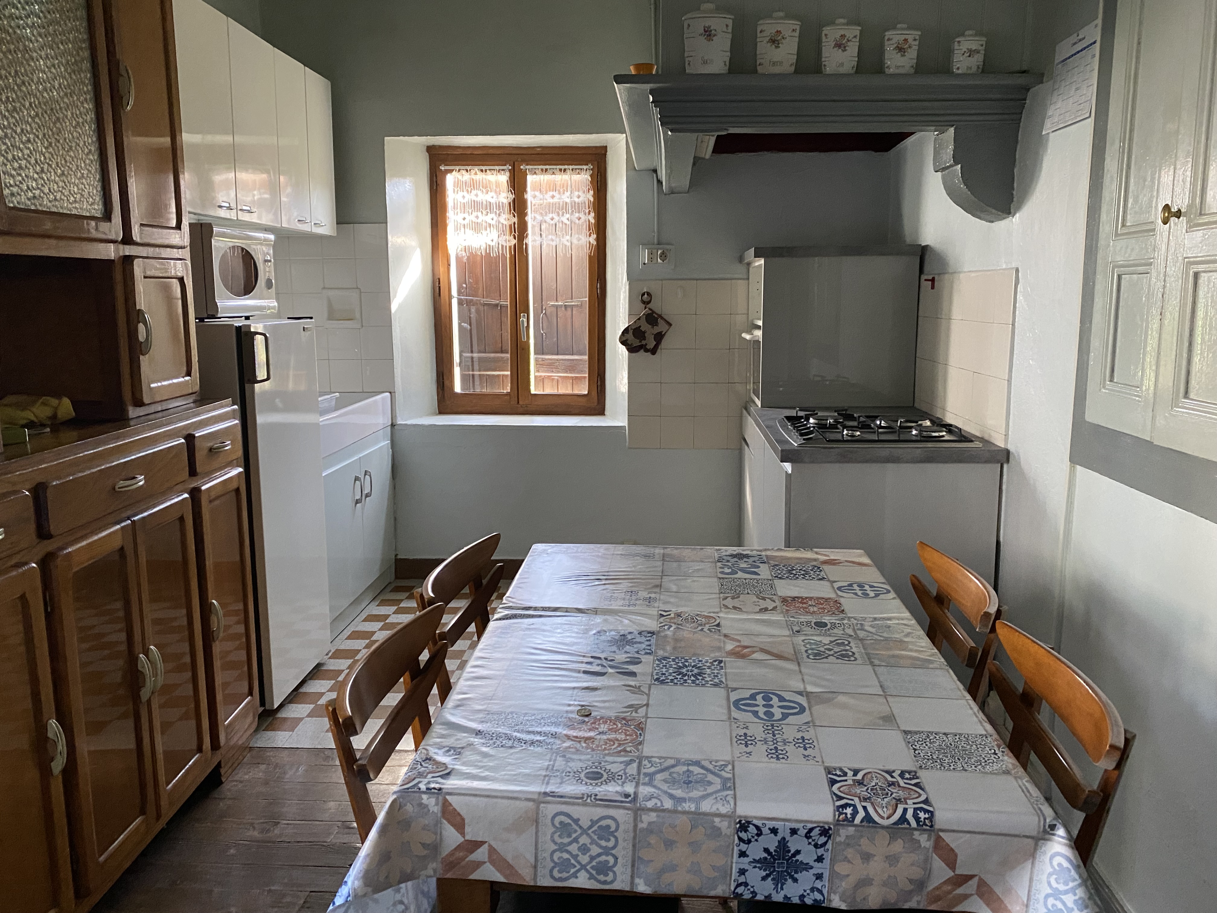 Parking et cour à disposition. Le logement se compose d'une pièce principale cuisine-salle à manger, une chambre attenante (1 lit de 140 + 1 lit de 90).
