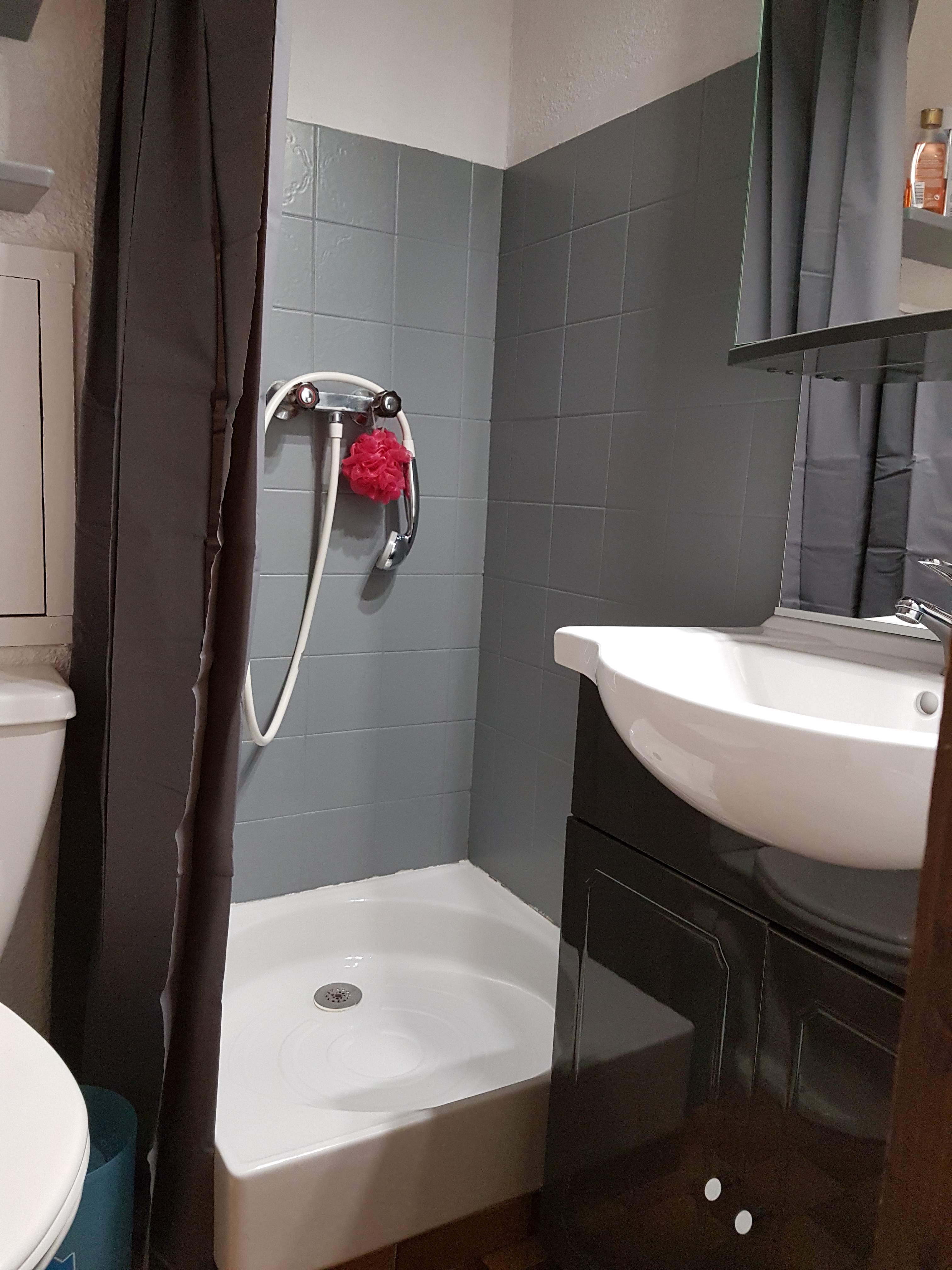 Salle d’eau (avec douche) et WC.
