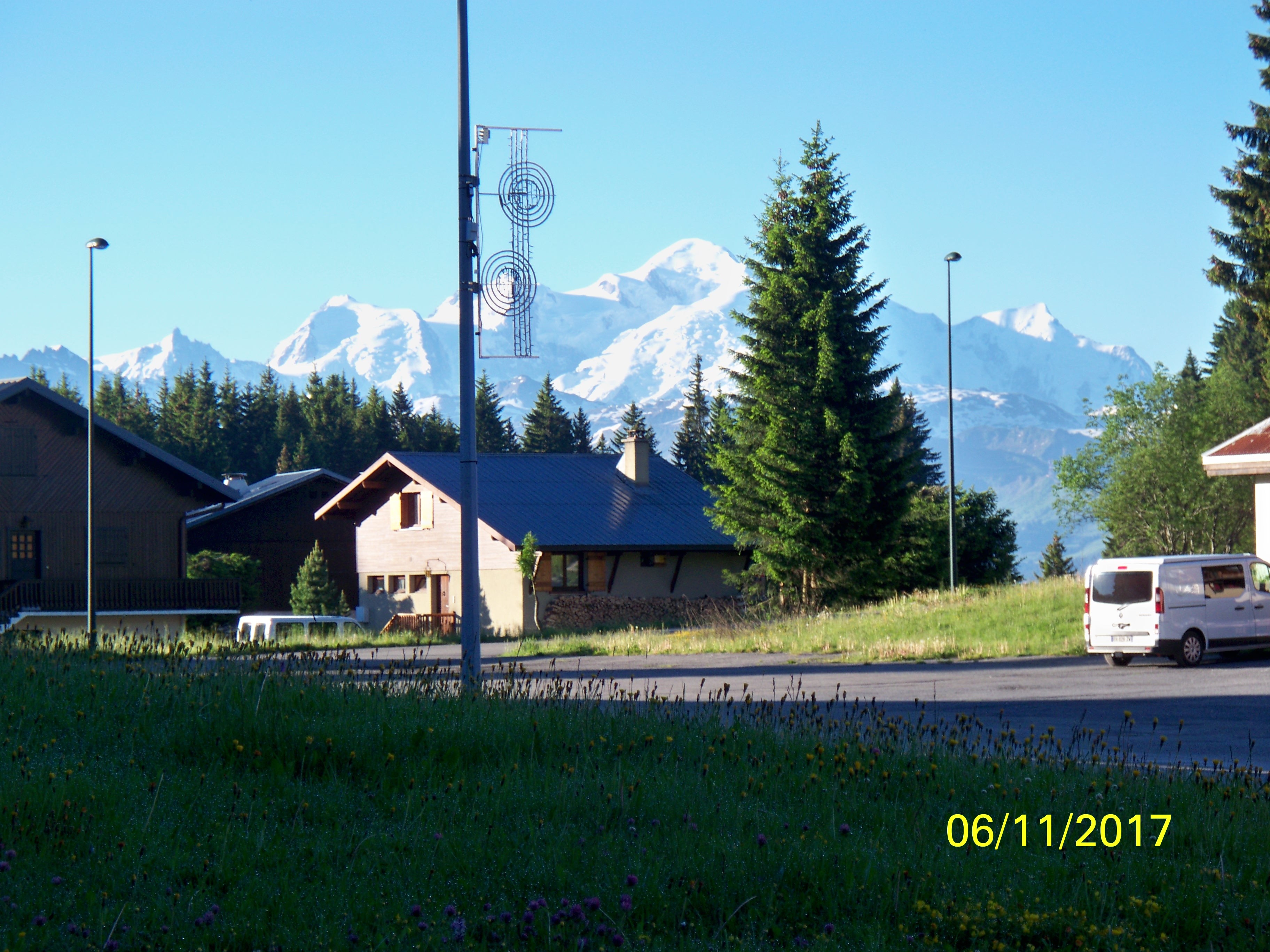 L’appartement est exposé Sud avec une vue sur les pistes, les montagnes et le Mont Blanc.