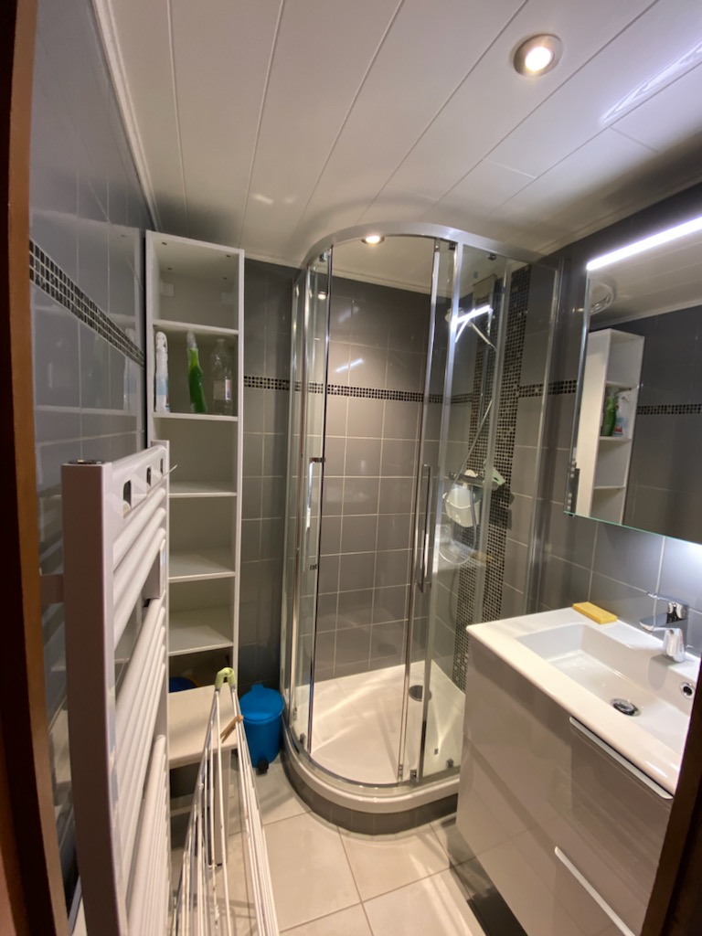 Salle d’eau avec douche. Sèche-cheveux et sèche-serviettes. WC indépendants.
