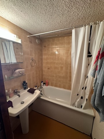 Salle de bains est composée d'un lavabo et d'une baignoire avec douchette avec WC indépendant.