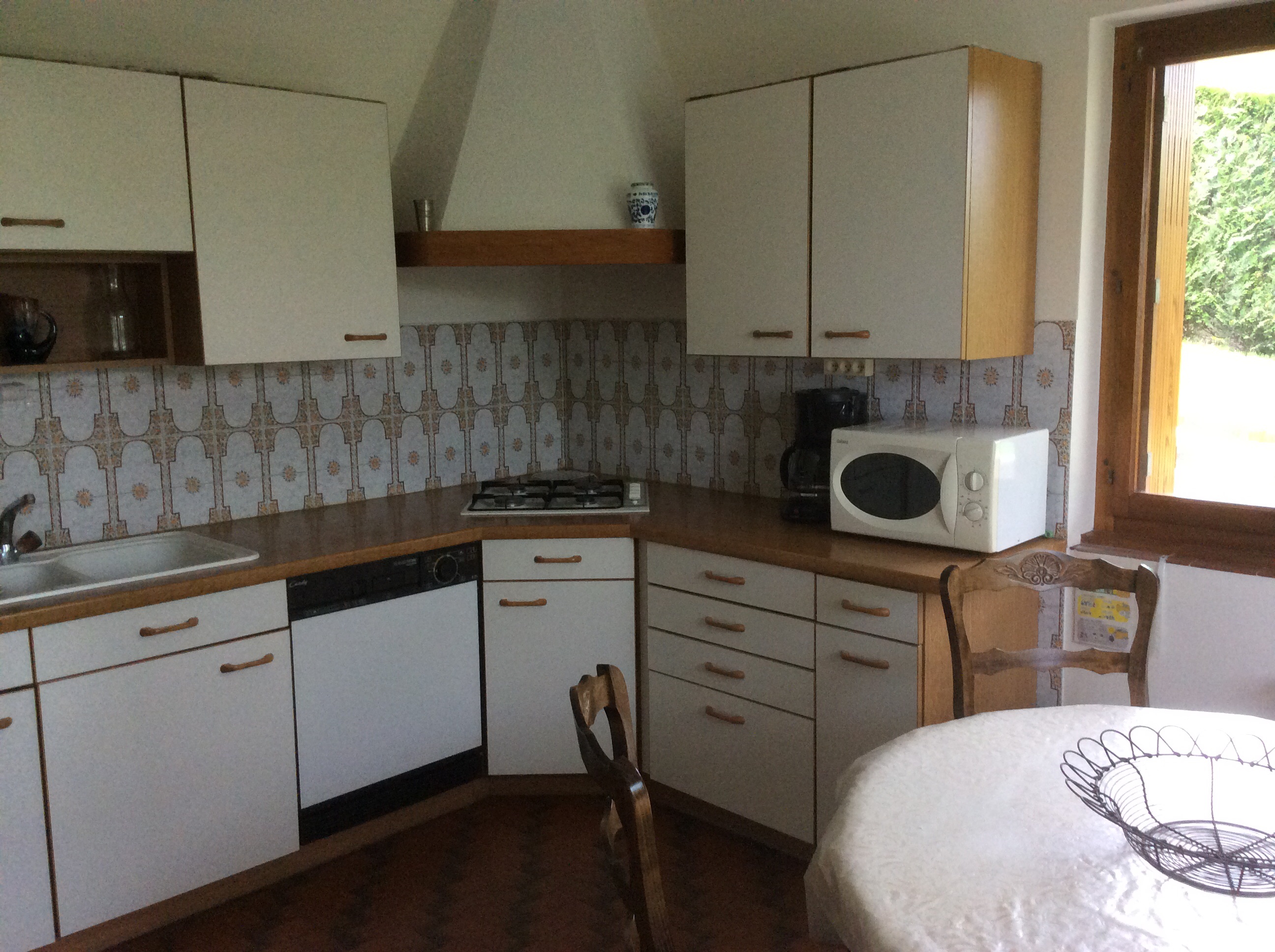 Meublé touristique de 40 m2 avec rez de jardin surélevé, disponible du 01/04 au 01/12/2026, 1 séjour + coin cuisine équipé, 1 chambre séparé, WC indépendant, espace vert, parking, chauffage central.