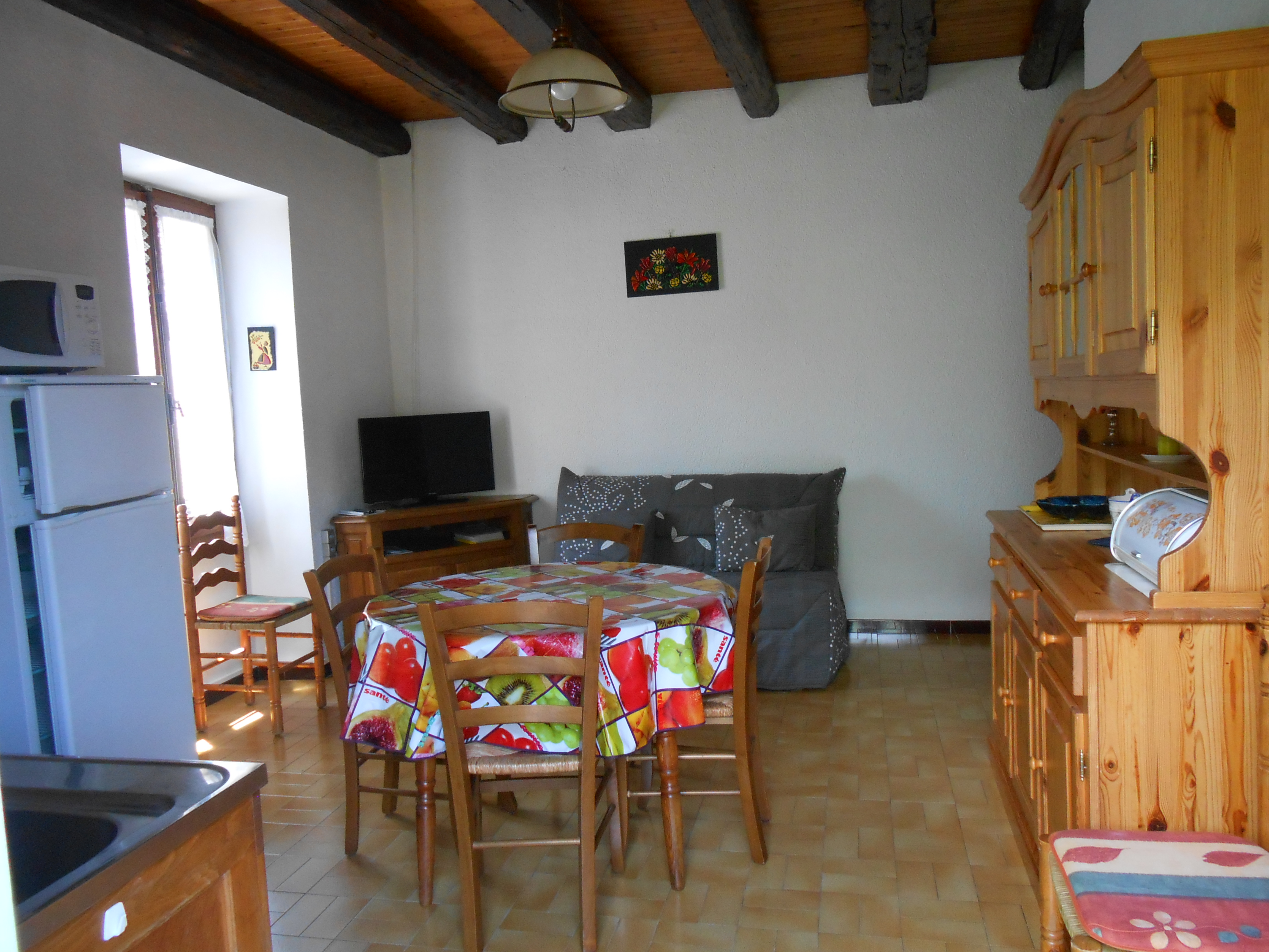 - Cuisine/Séjour : un canapé convertible type BZ