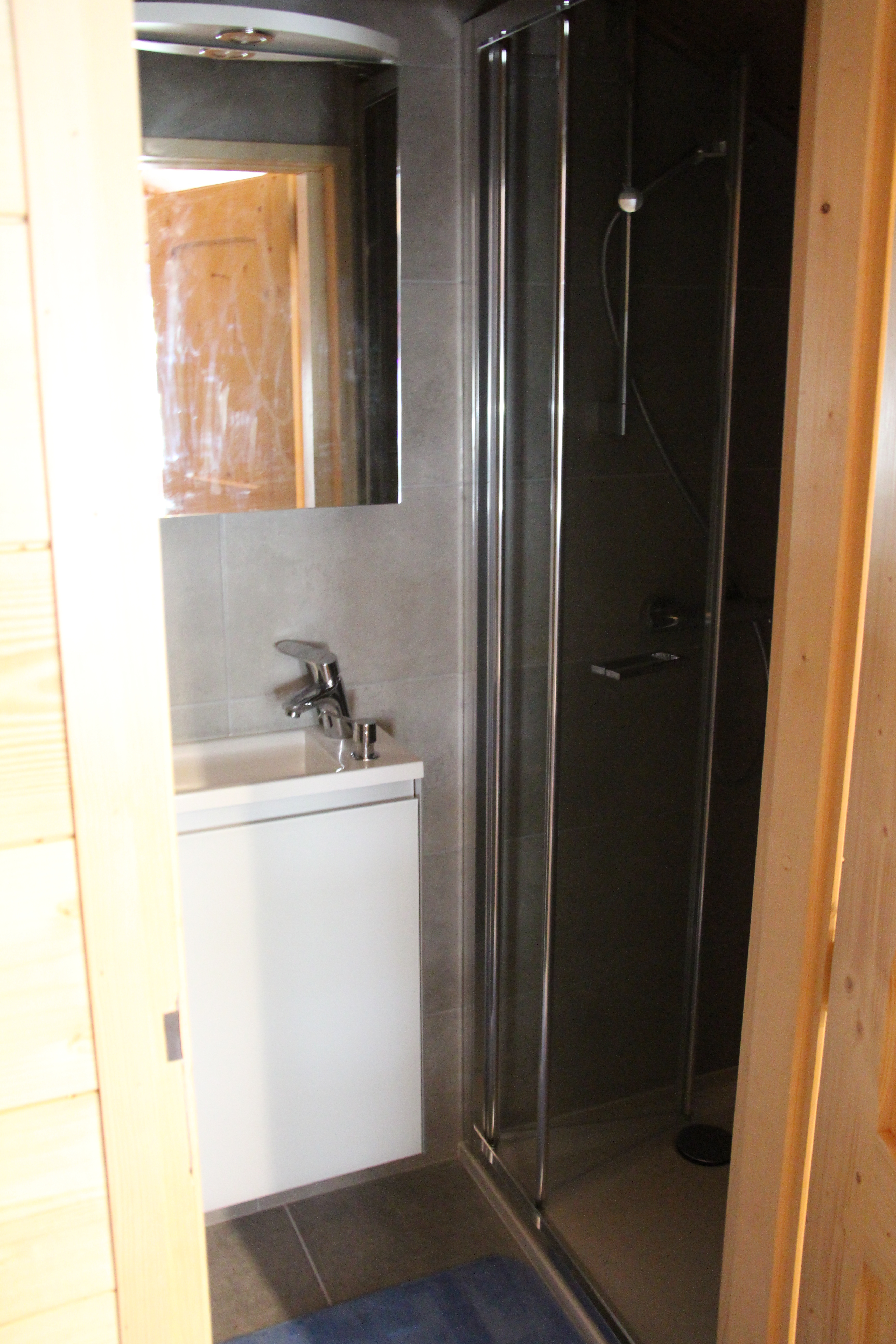 Lits double pour 2 personnes, placard et salle d'eau: douche, lavabo, WC